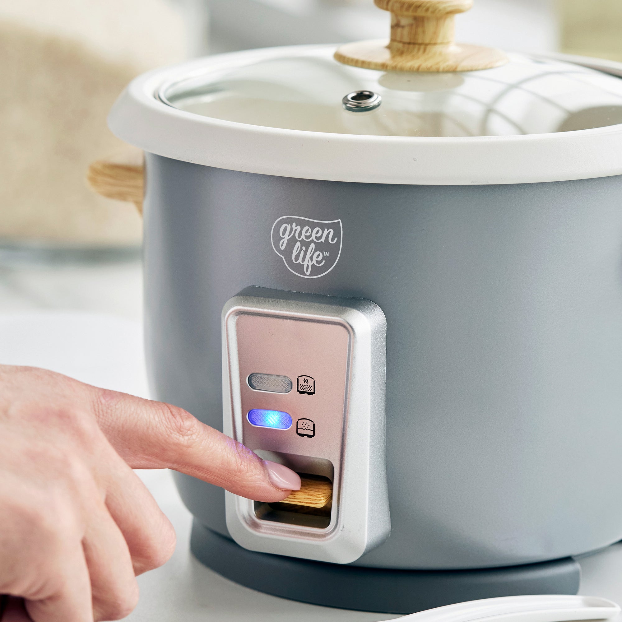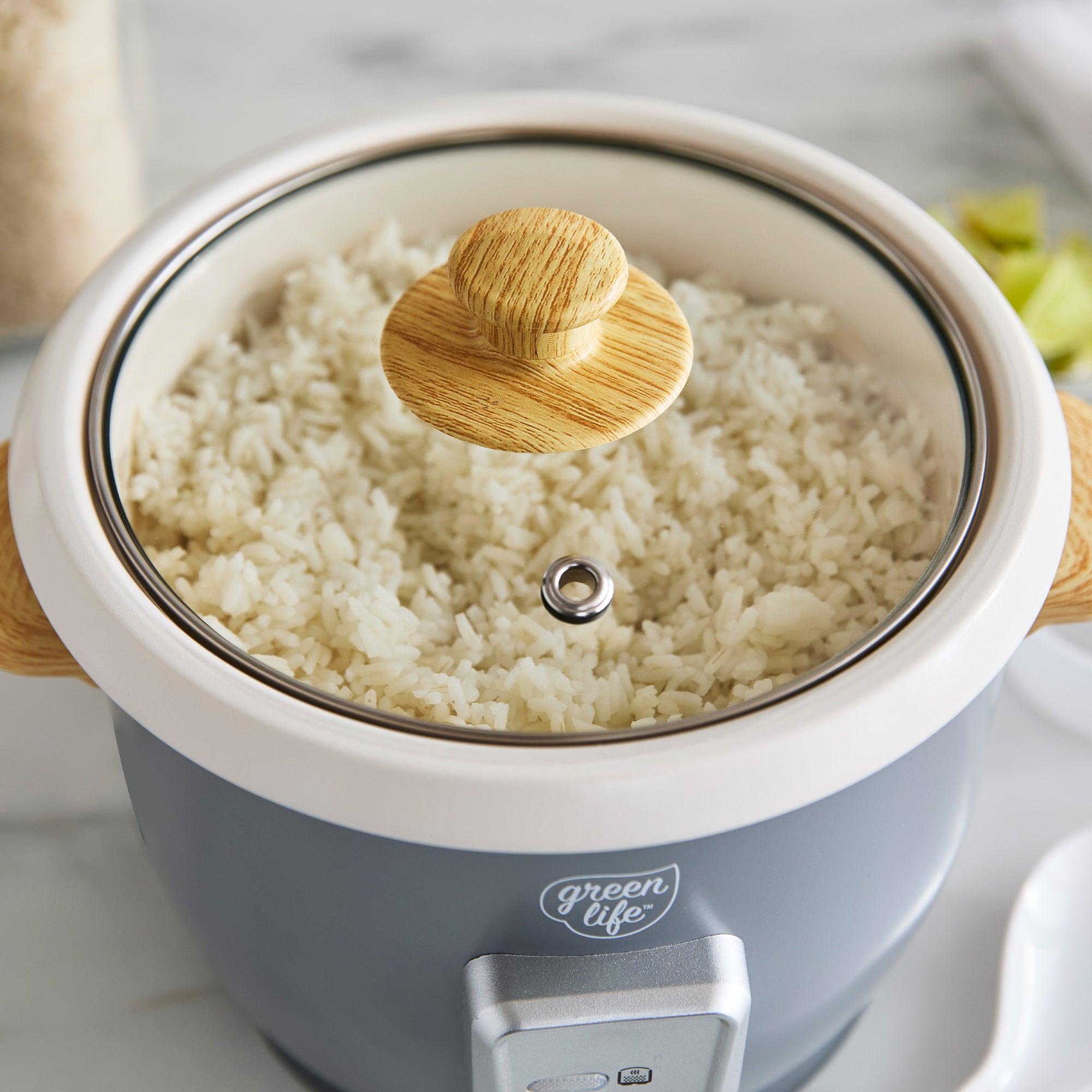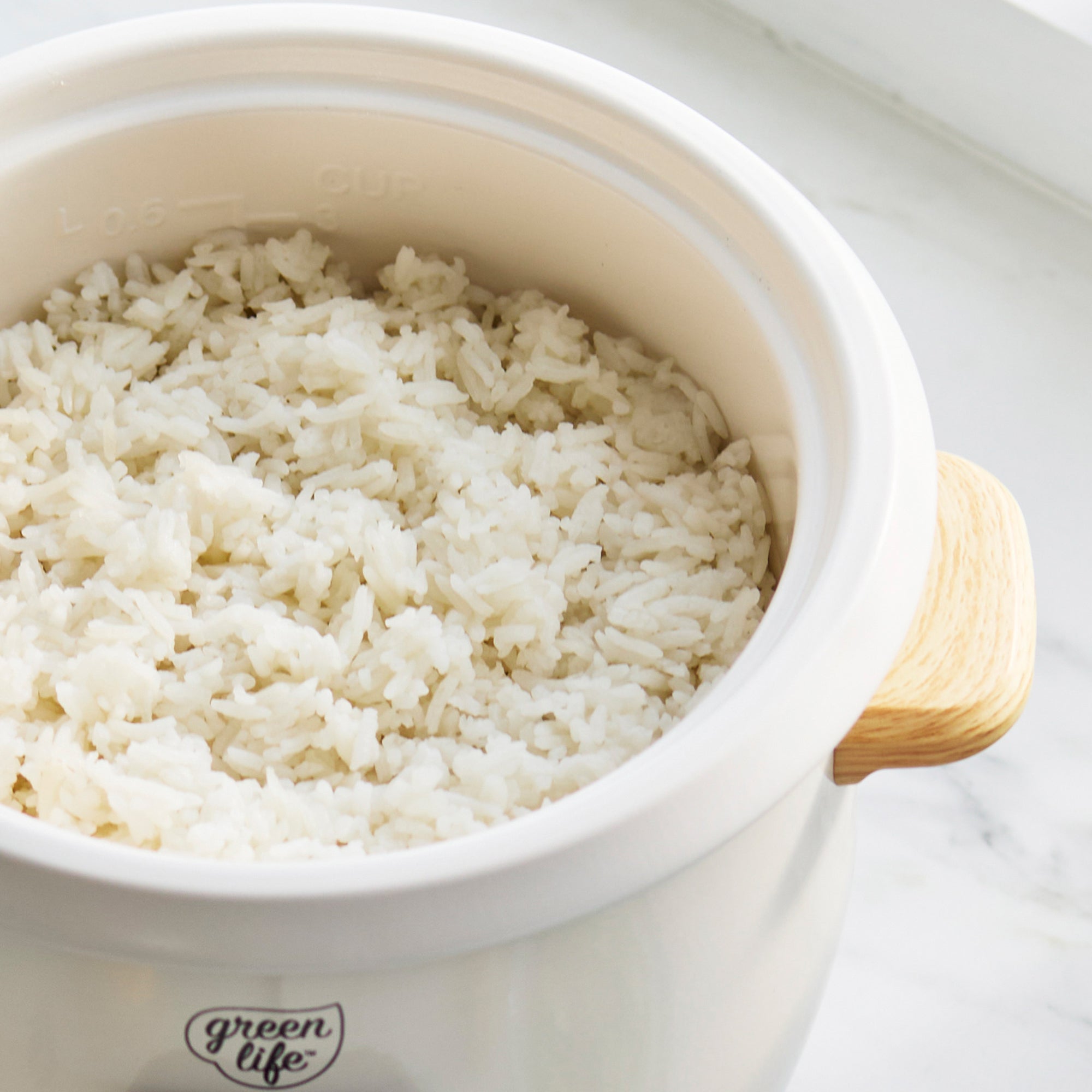 Designed to make up to 6 cups of cooked rice with just one touch, this convenient companion turns ordinary rice into fluffy, flavorful masterpieces. Featuring our PFAS-free ceramic nonstick coating, this rice cooker makes meals healthier and cleanup even easier.
