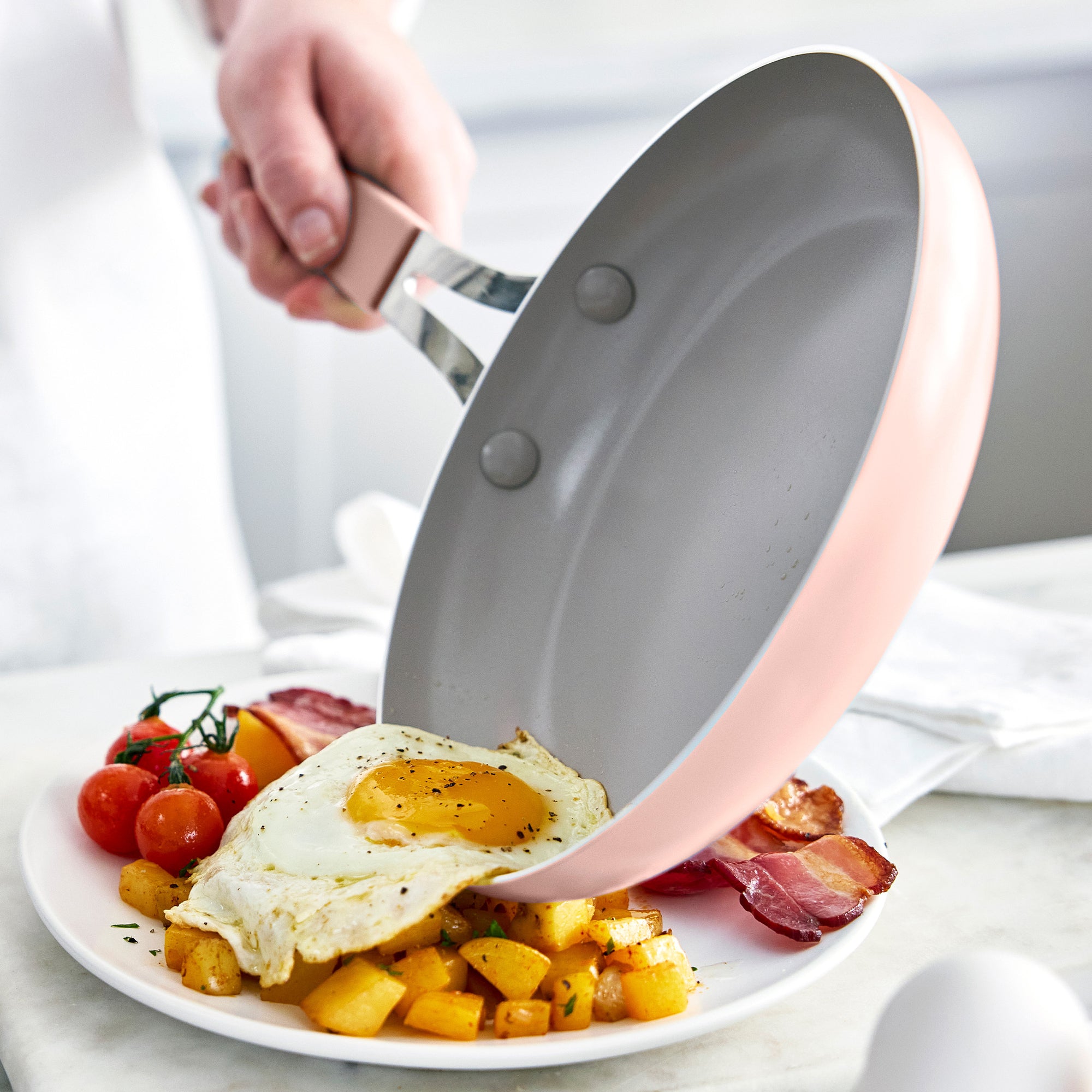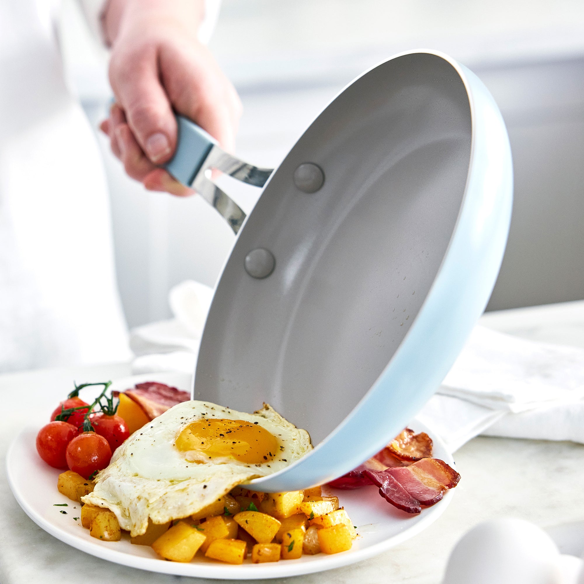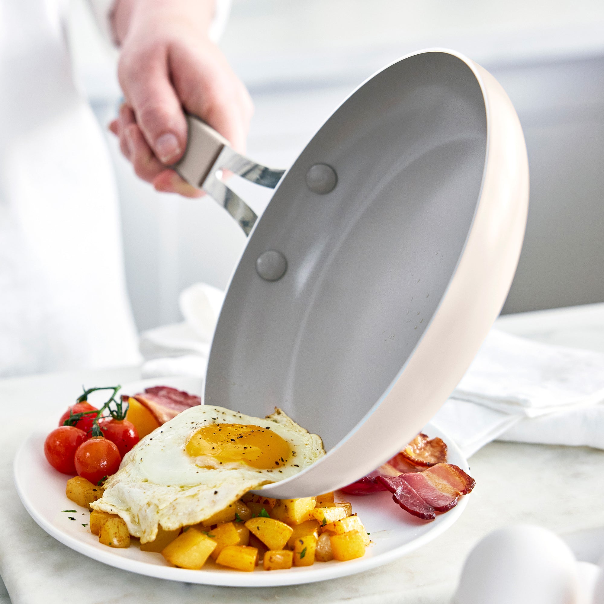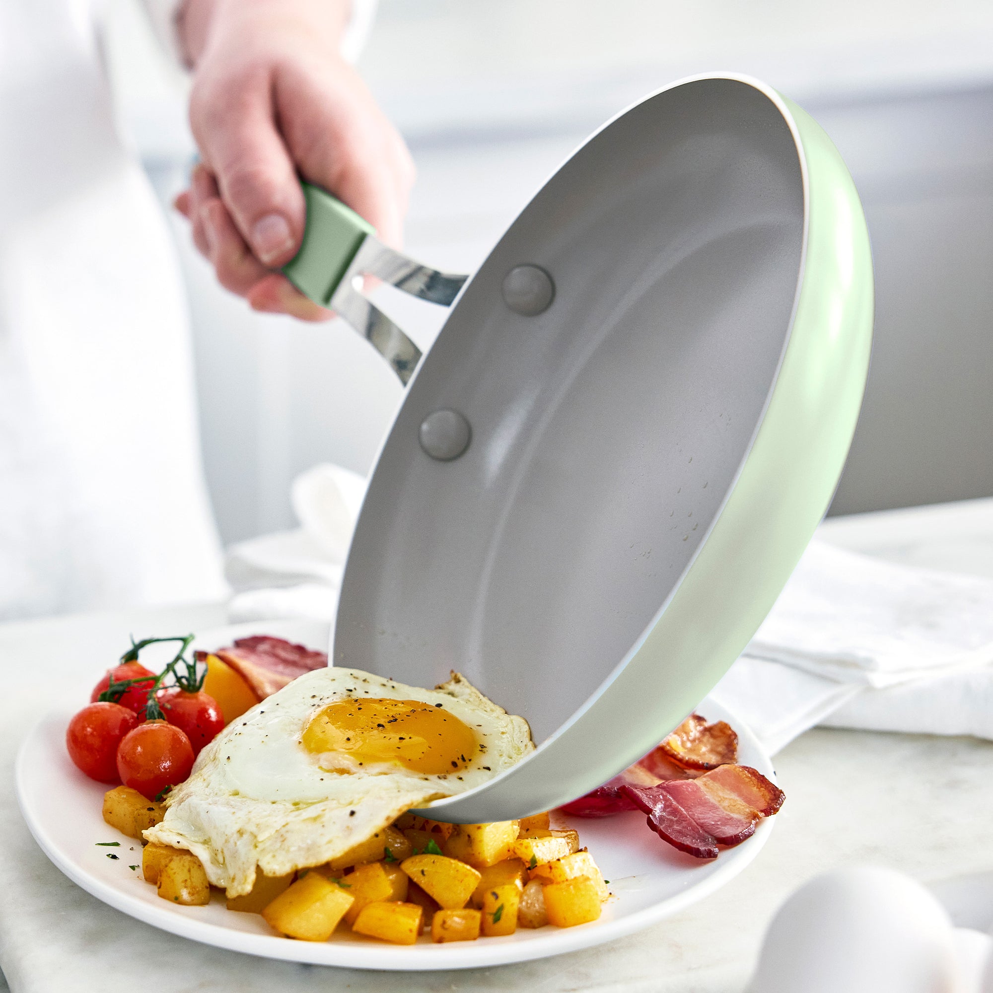 • Our healthy ceramic nonstick coating is made from sand and free of PFAS, PFOA, lead, and cadmium