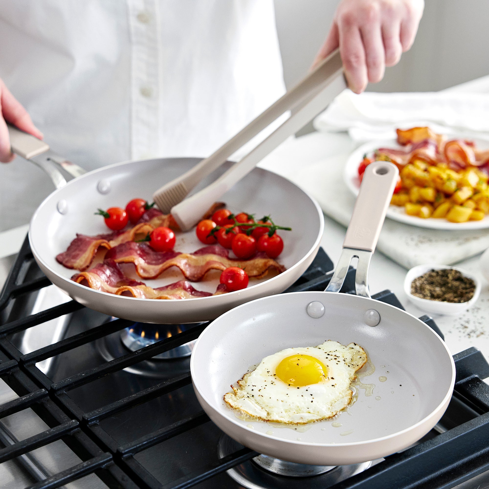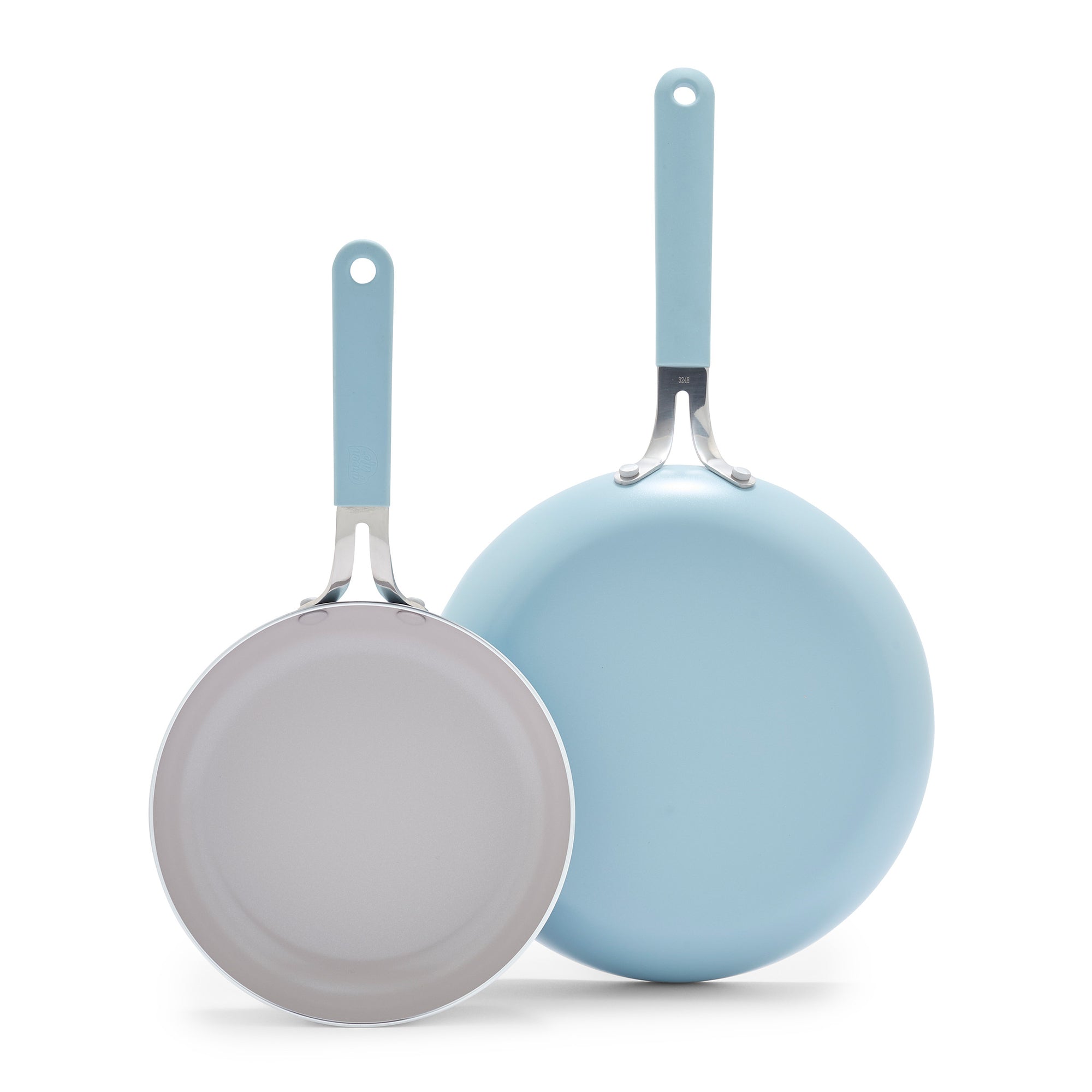Don’t just add one reliable pan to your routine, double your options with this high-performance frypan duo. Both pans feature lightweight bodies and stay-cool handles so you can heat meals faster and transfer them easier.
