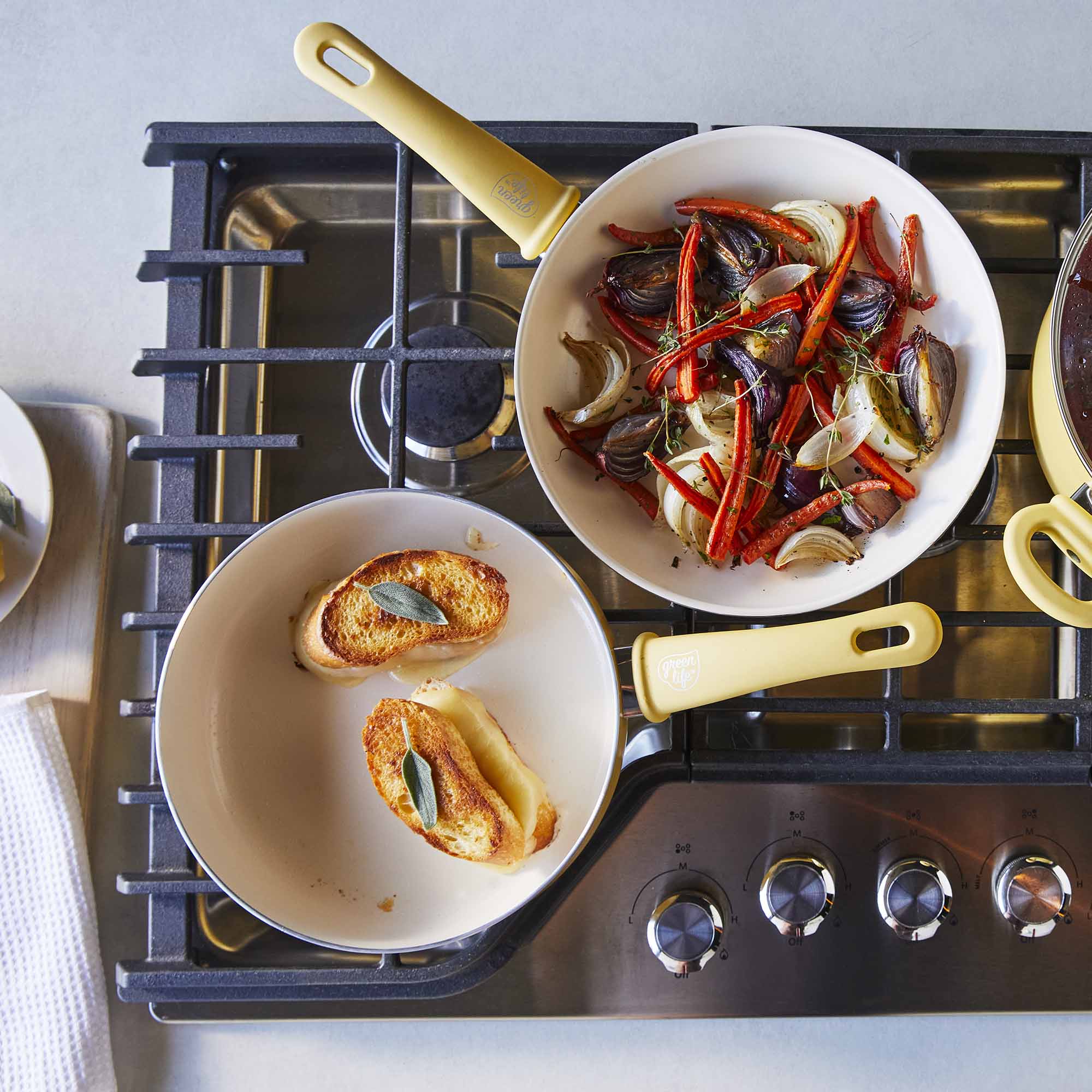 These sets include all the essentials you need to make nutritious meals and classic comfort foods—morning, noon, and night. Plus, the bright colors bring a ray of sunshine to any kitchen.