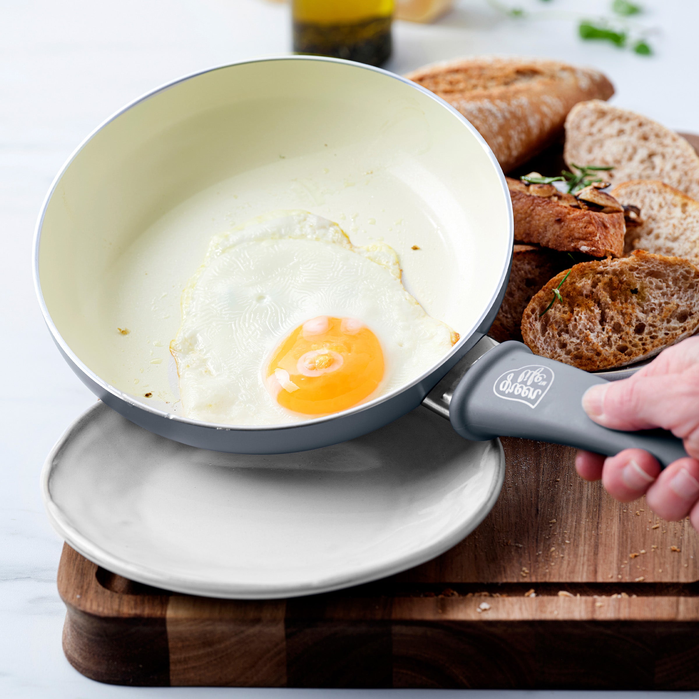 Get a grip—literally! Soft Grip features ergonomic, stay-cool handles that make everyday cooking easier than ever. Our healthy ceramic nonstick coating releases even the stickiest foods (hello, cheese) effortlessly and wipes clean in seconds, no soaking required.