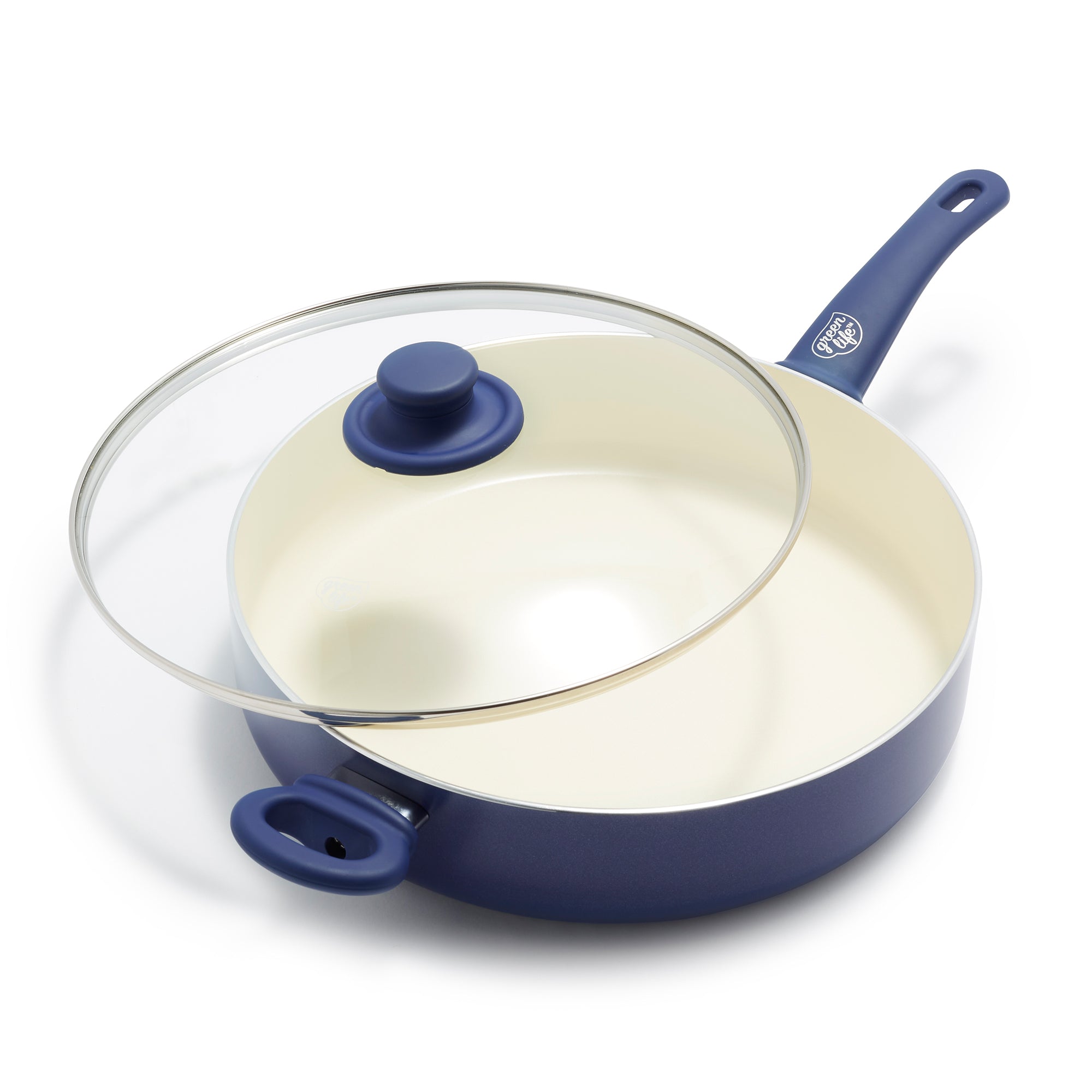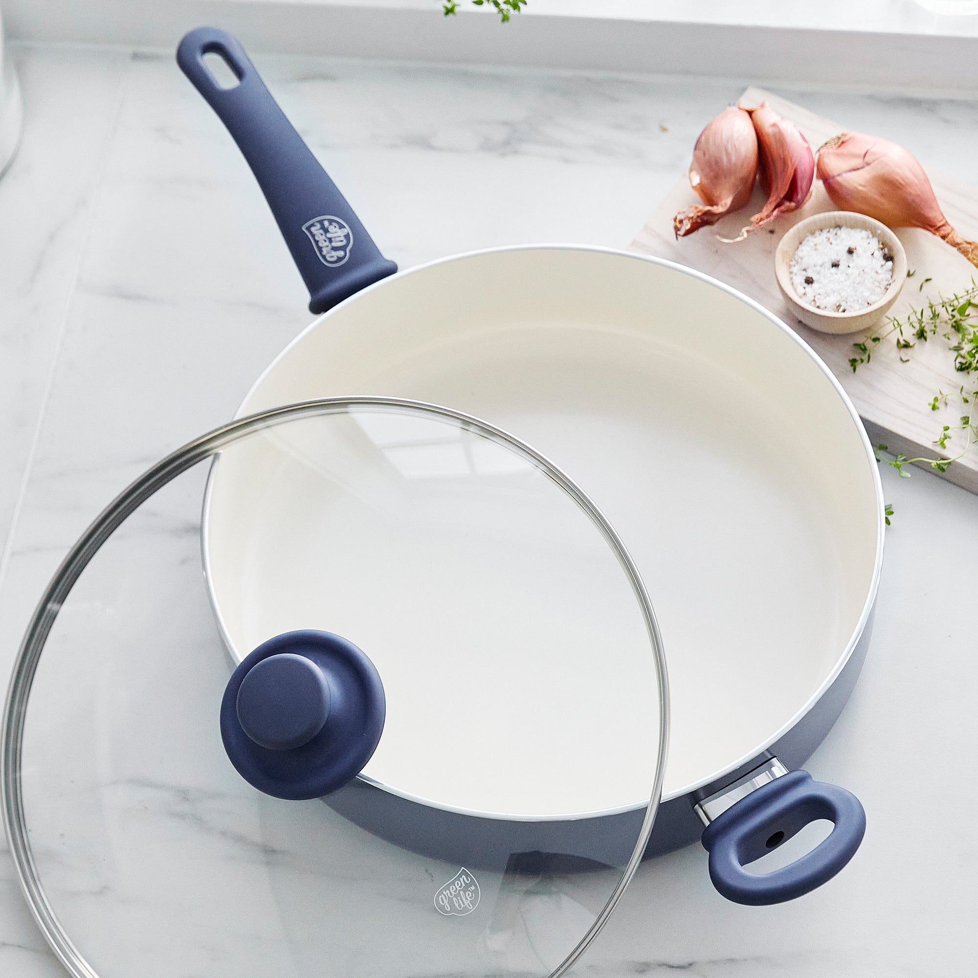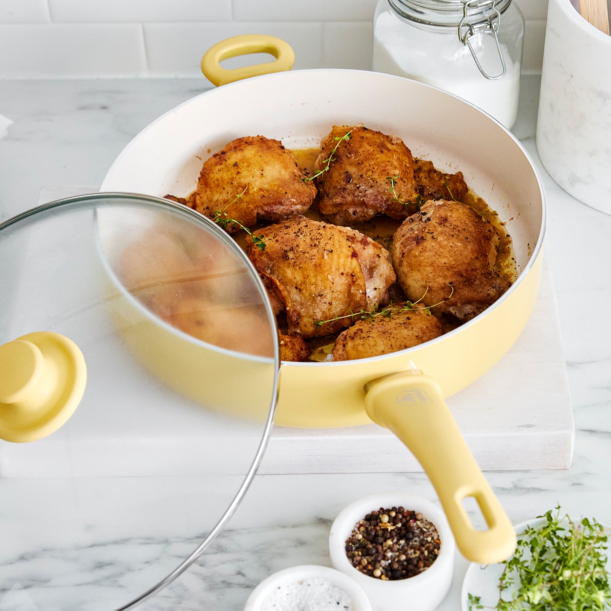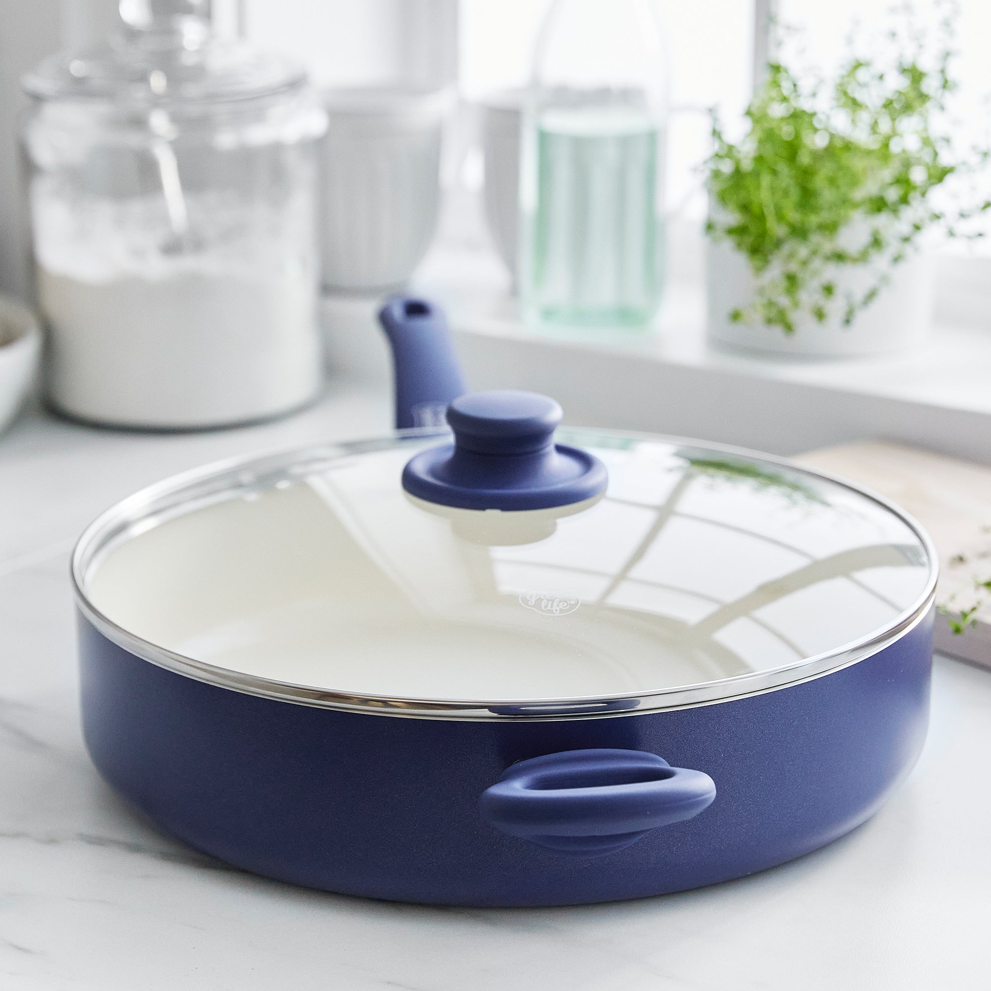 Meet your new go-to favorite for everything from sautéing and searing to frying and braising. A wide cooking surface makes this multitasker ideal for one-pan meals, while the clear glass lid locks in moisture and lets you monitor food as it cooks. Plus, the fun turquoise color might just make kitchen time feel like a day at the beach.