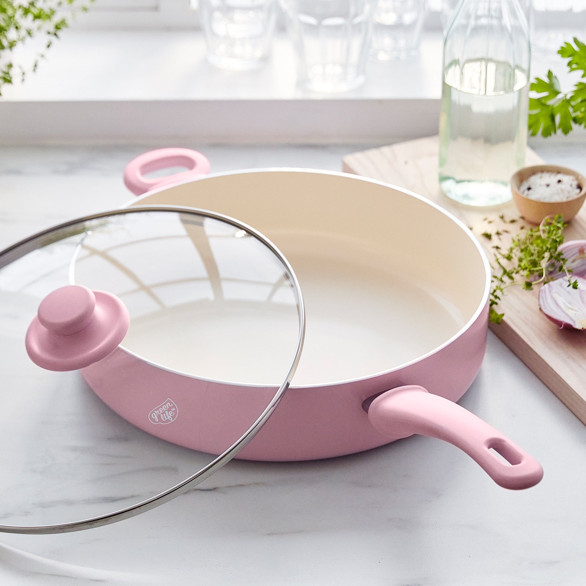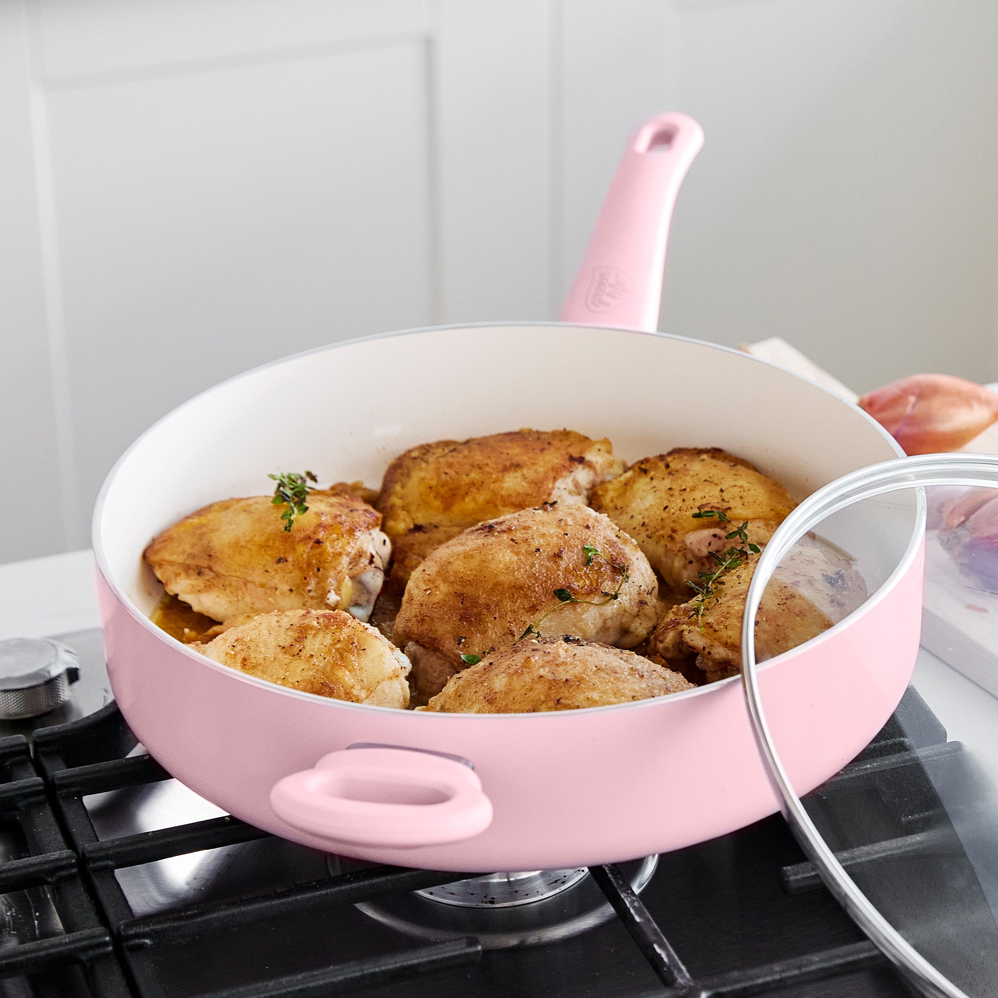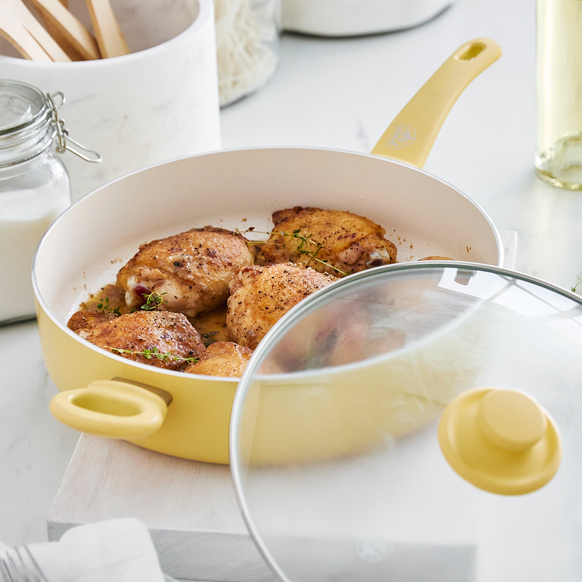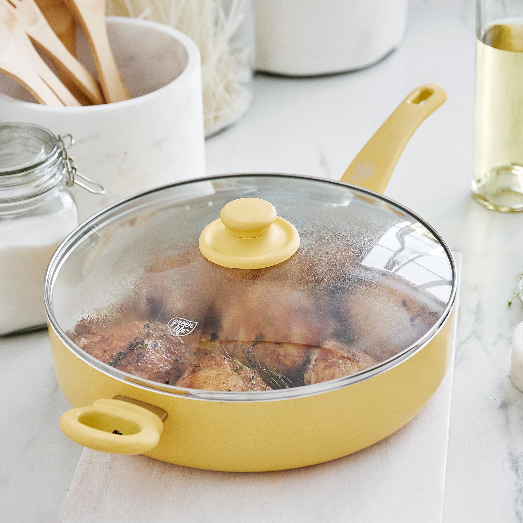 Meet your new go-to favorite for everything from sautéing and searing to frying and braising. A wide cooking surface makes this multitasker ideal for one-pan meals, while the clear glass lid locks in moisture and lets you monitor food as it cooks. Plus, the fun turquoise color might just make kitchen time feel like a day at the beach.