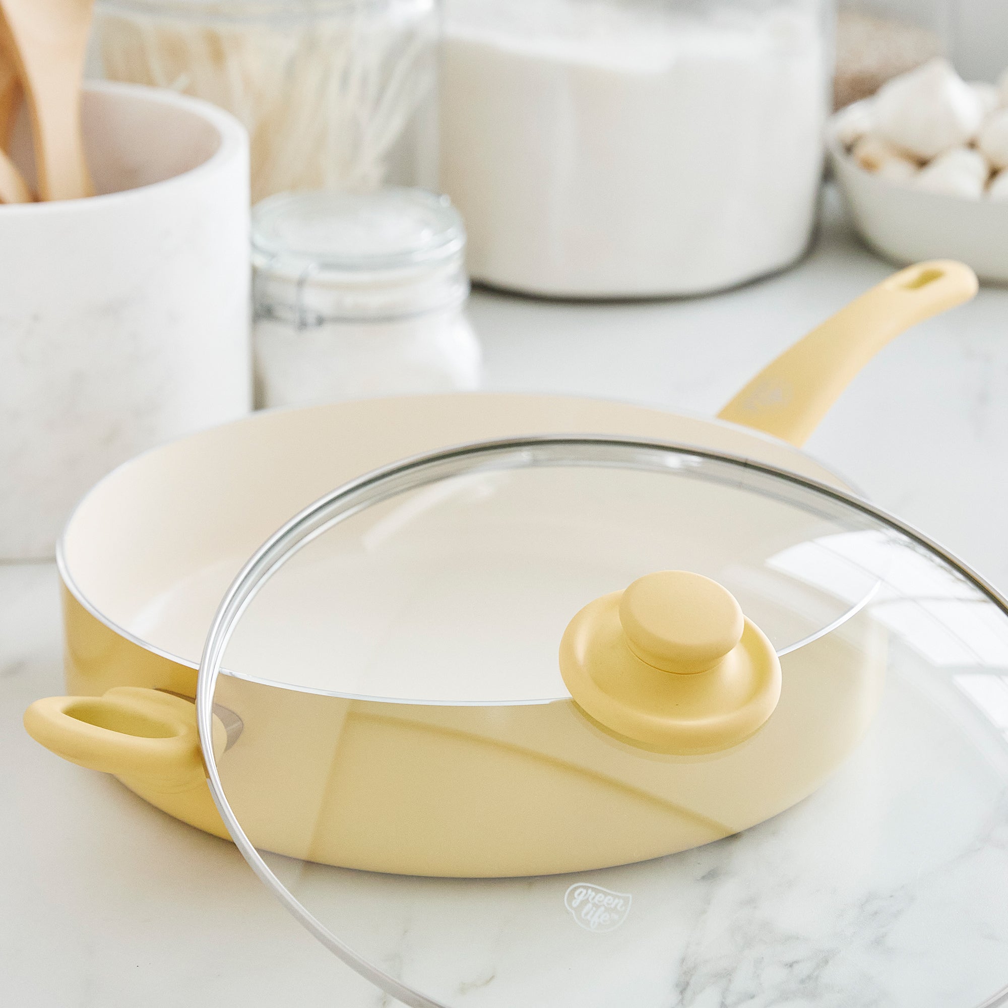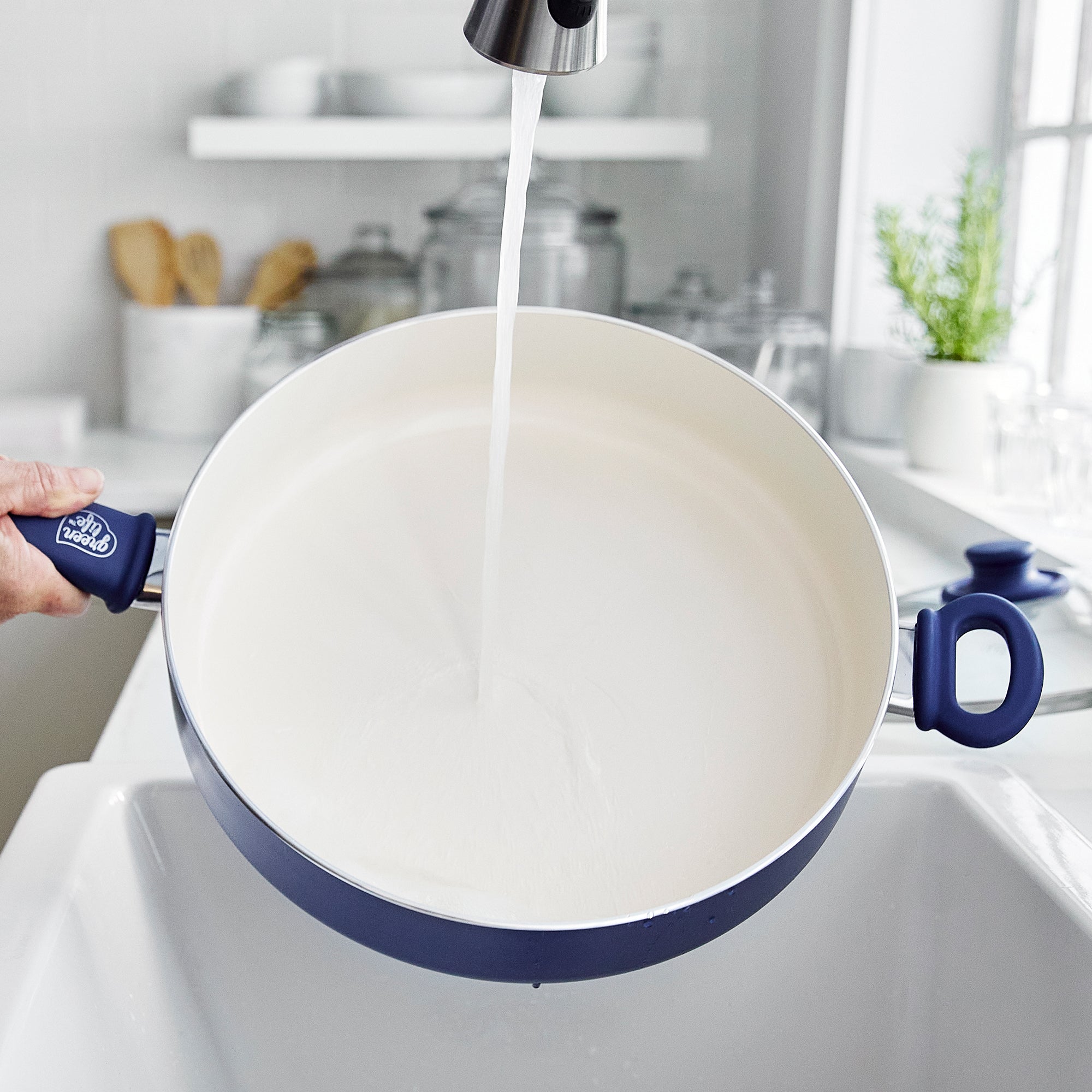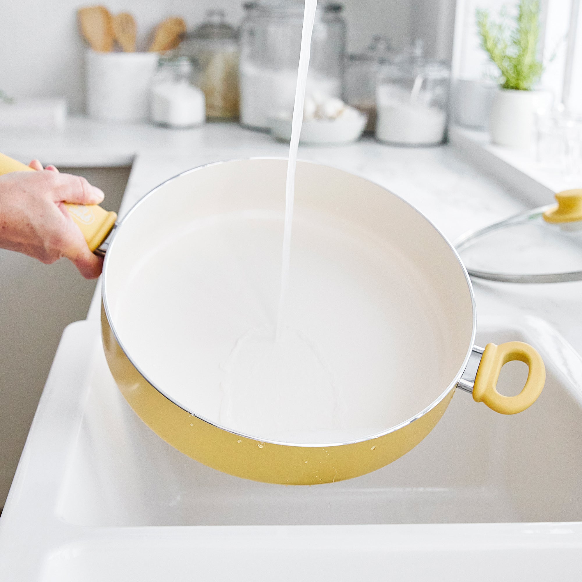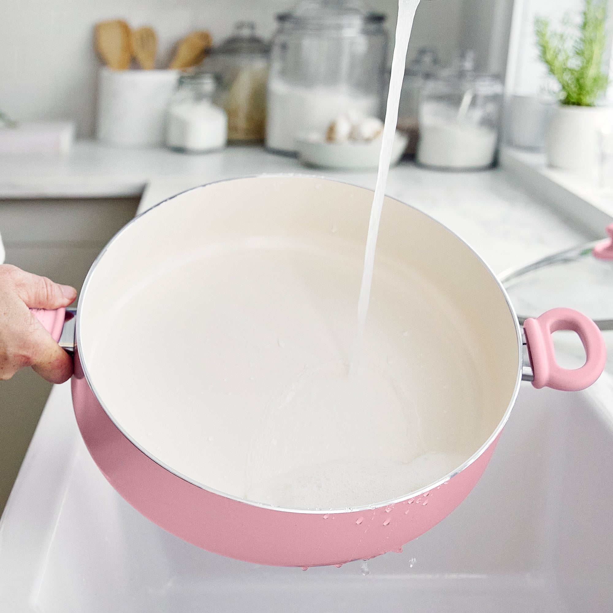 • Our healthy ceramic nonstick coating is made from sand and free of PFAS, PFOA, lead, and cadmium