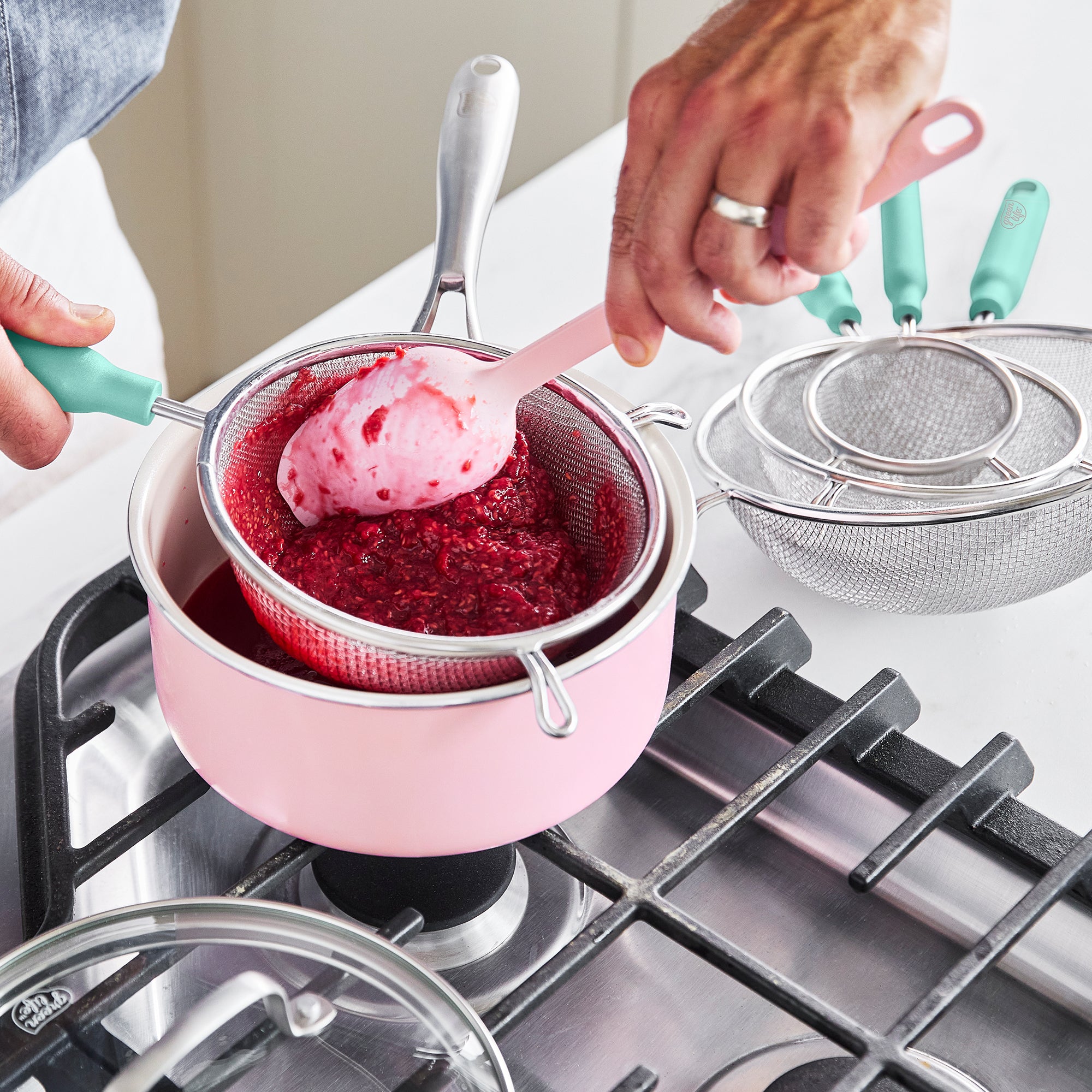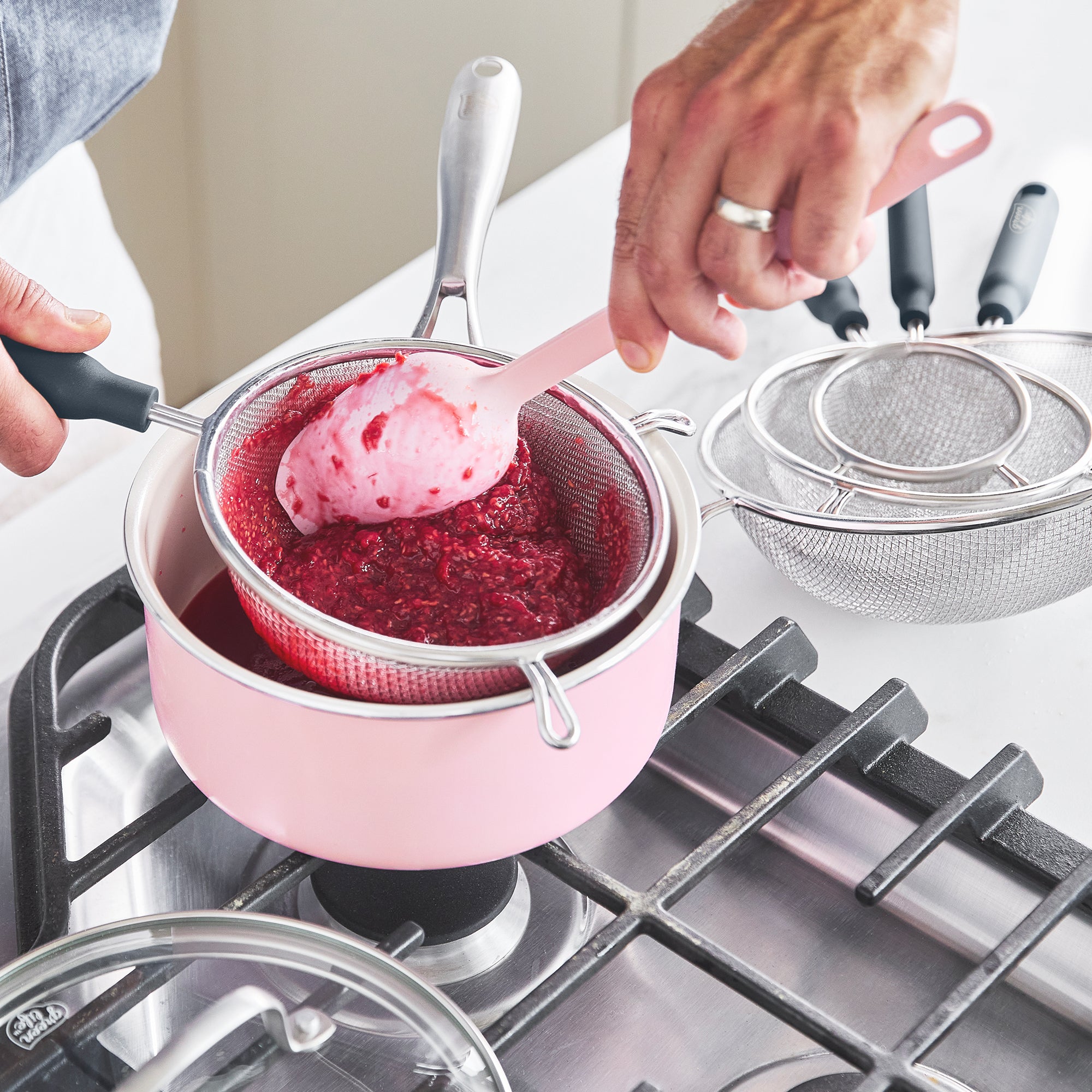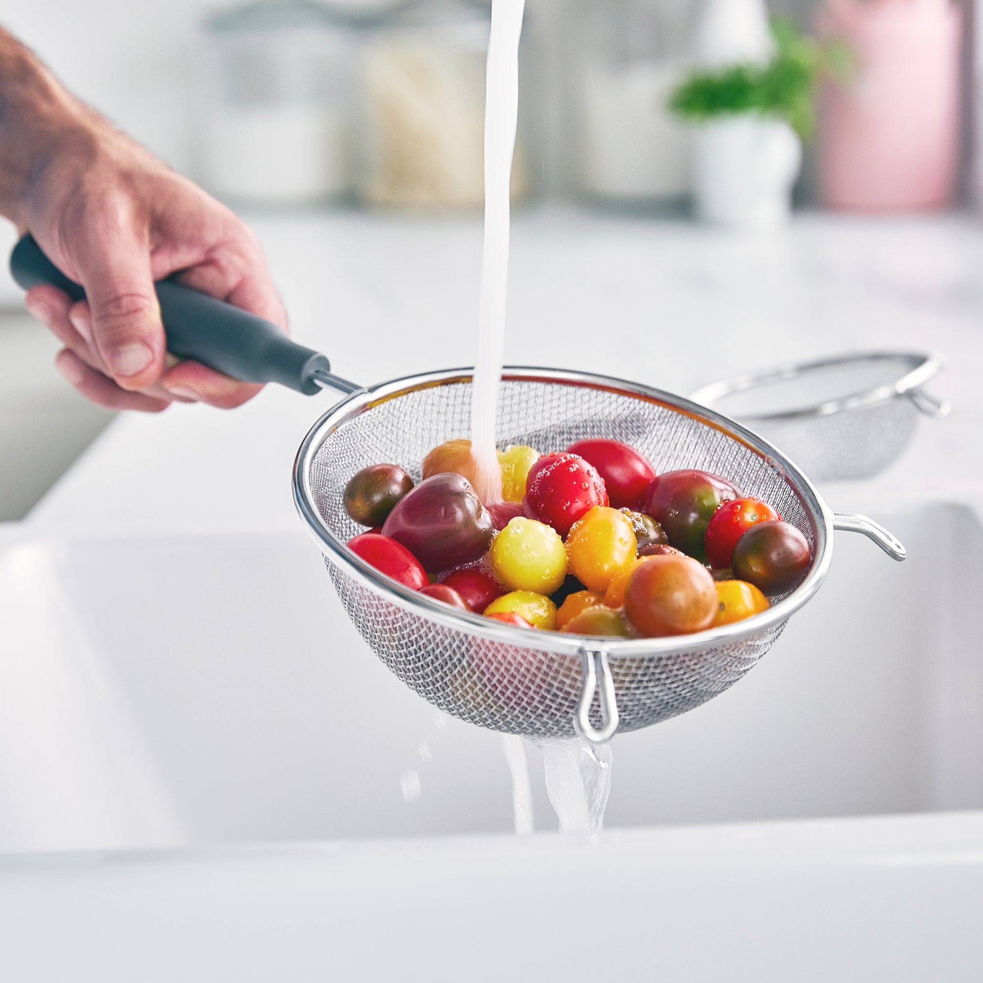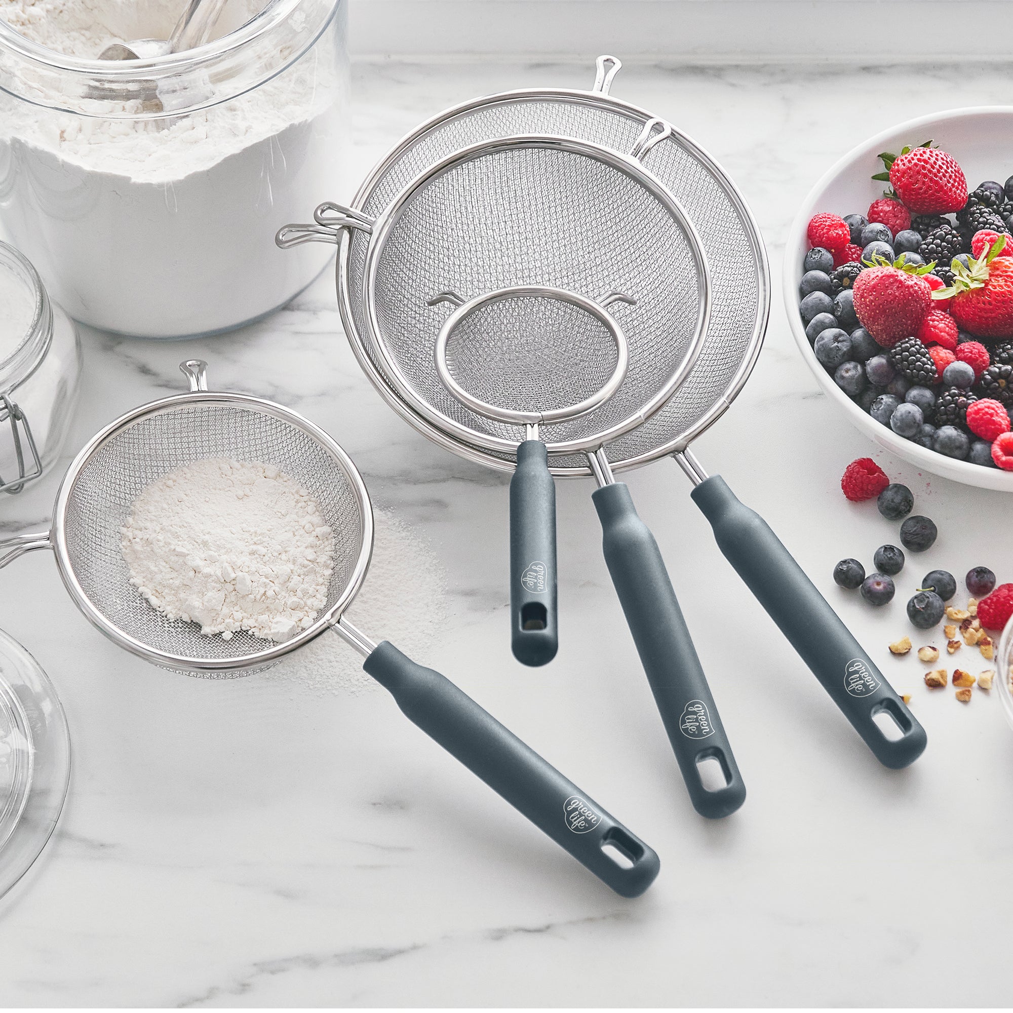 Designed to fit around your kitchen routine, this set of strainers is perfect for rinsing produce, draining pastas, straining hot liquids, steaming veggies, and so much more! The smaller strainers are ideal for cocktails, jams, and washing berries, while the larger ones are perfect for pastas, washing veggies, and steaming.