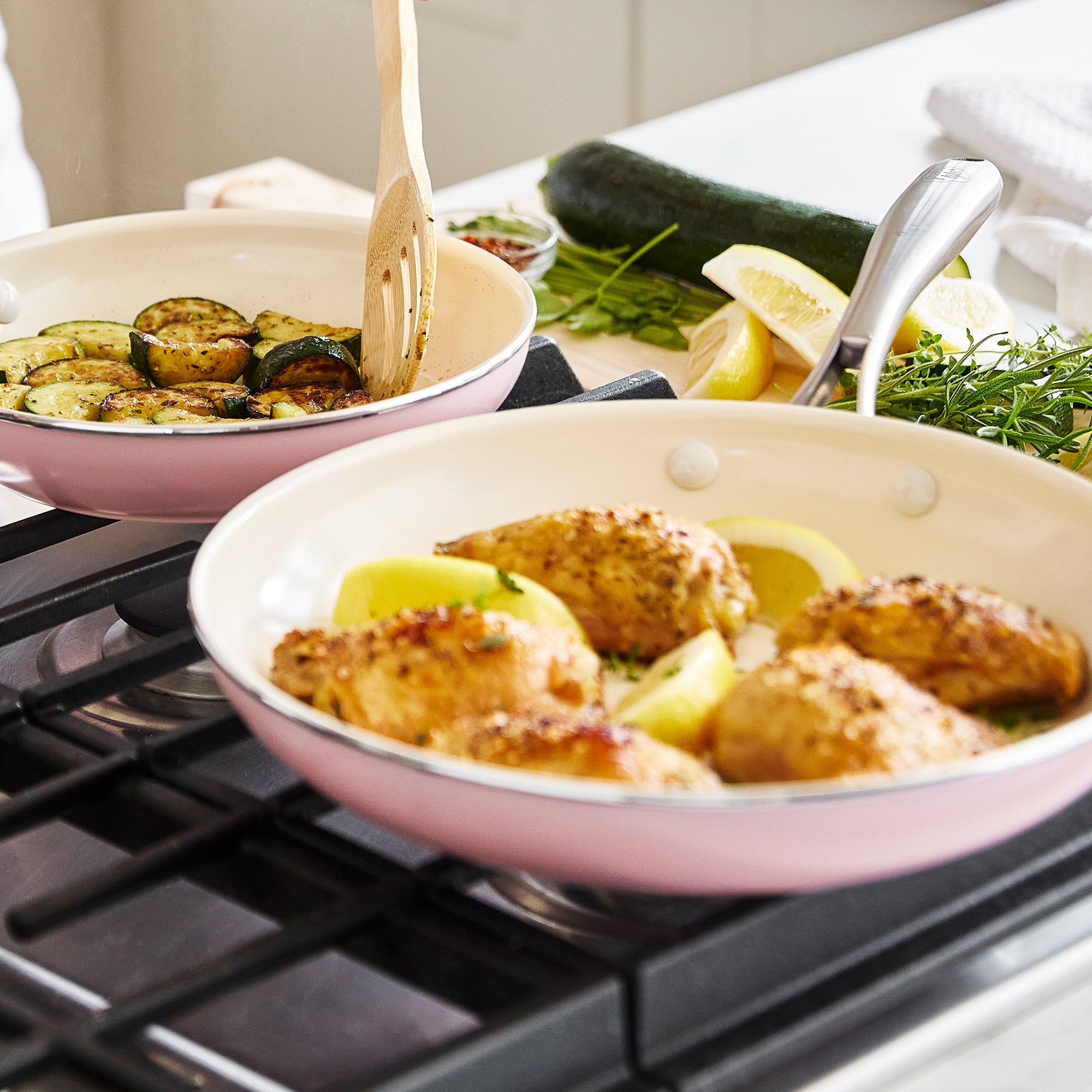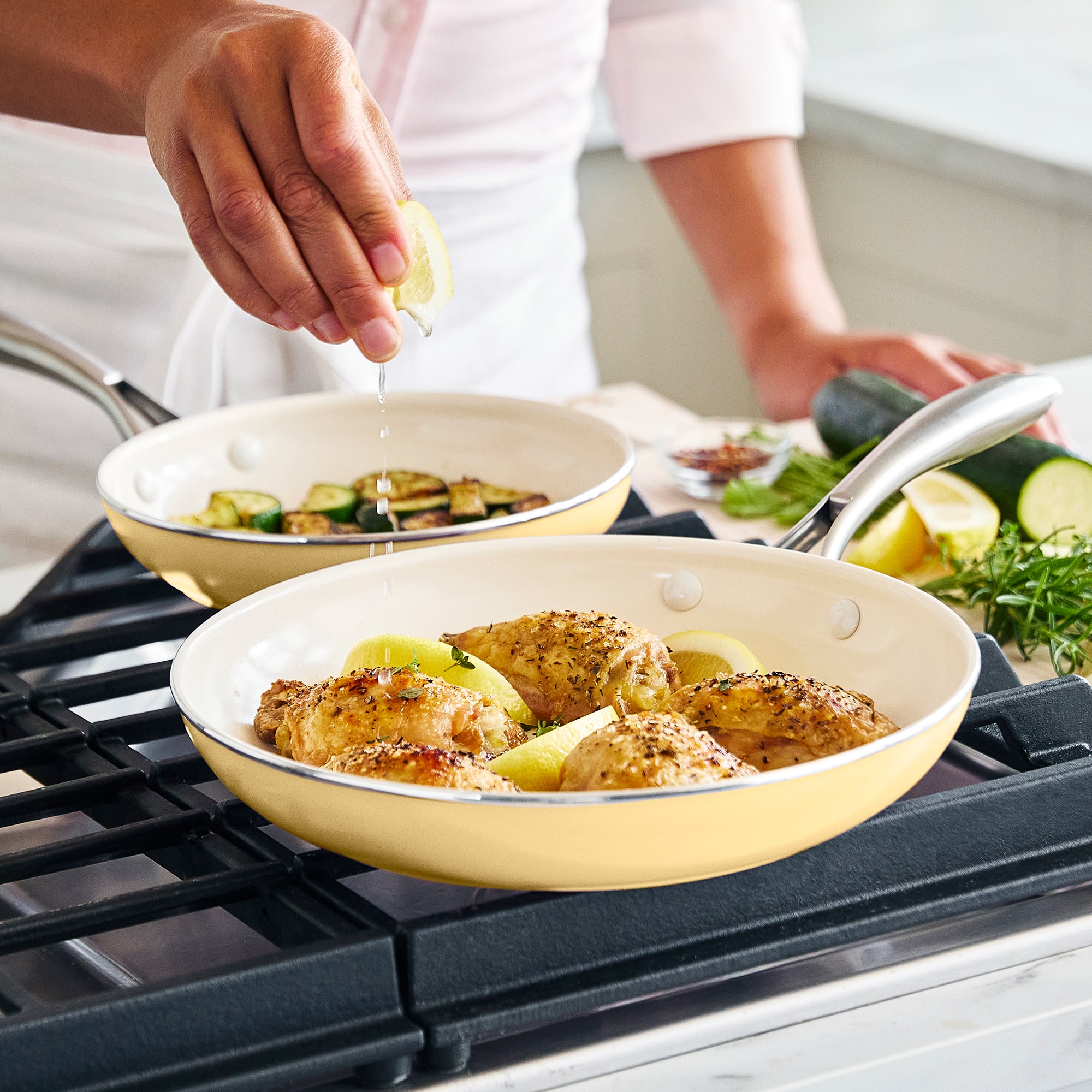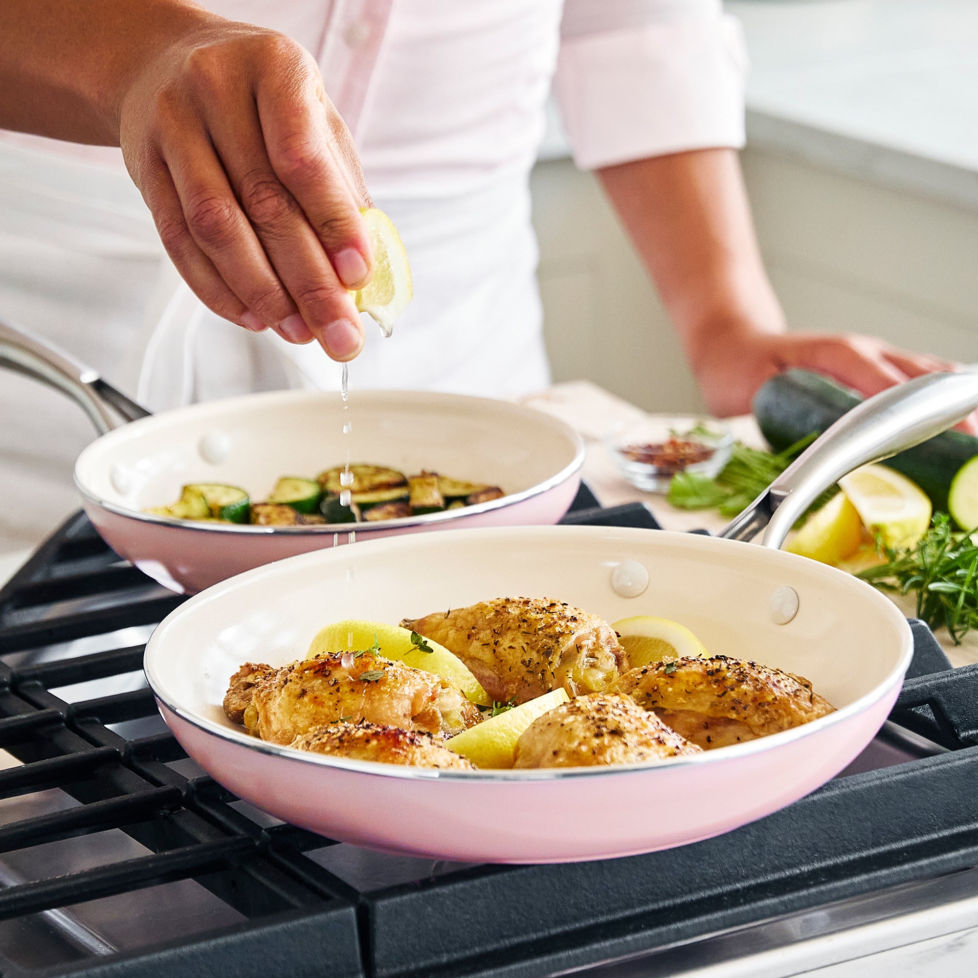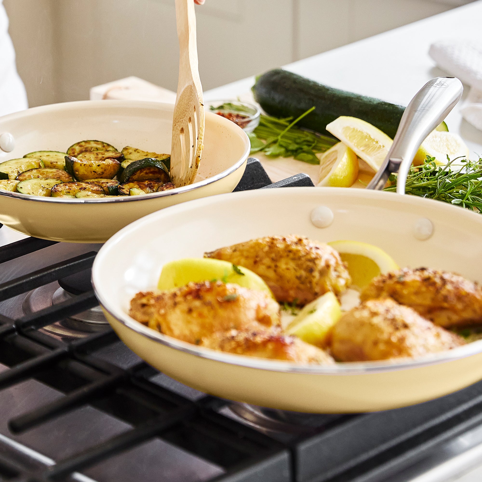 • This pan’s diamond-reinforced healthy ceramic nonstick coating is extra durable, derived from sand, and free of PFAS, PFOA, lead, and cadmium