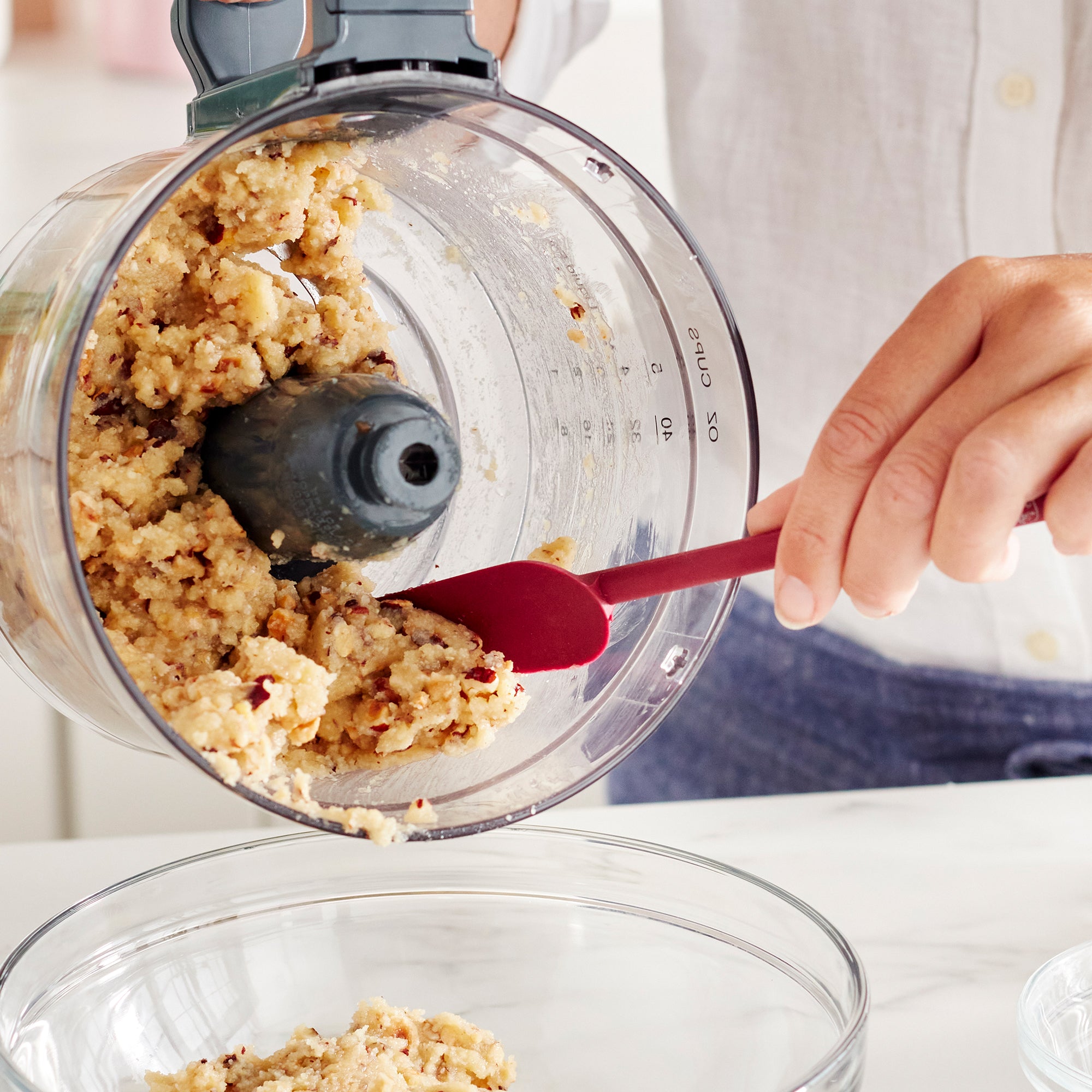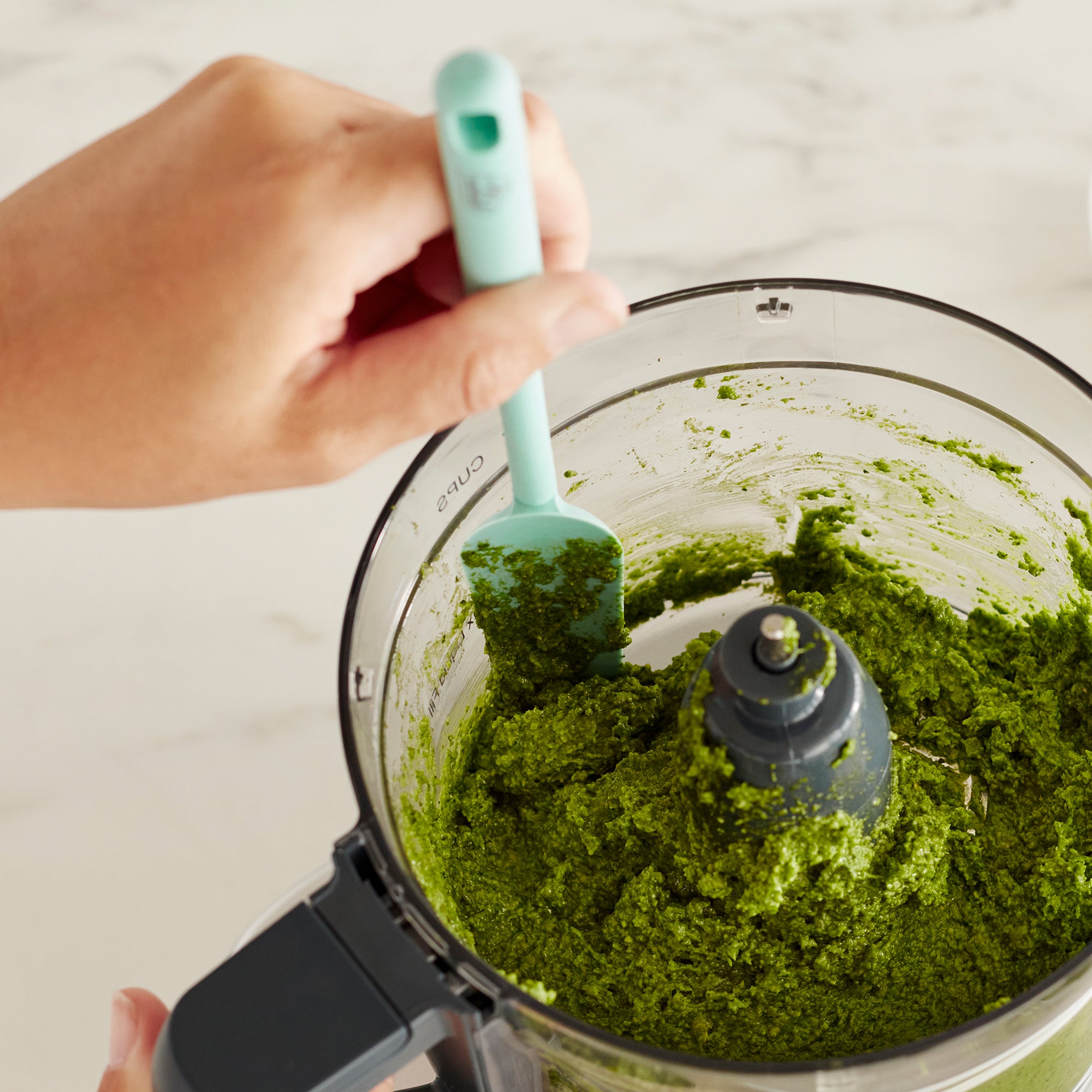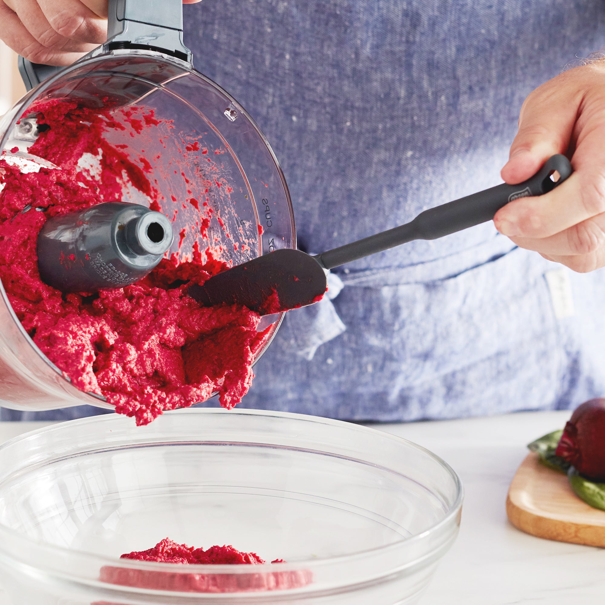 This pair of stain-free nonstick silicone spatulas is designed to cover a wide array of kitchen tasks. The large spatula is designed to reach deep into blenders and large containers, allowing you to scrape out the last bit. The angled tip even helps you reach under the blades. The smaller spatula is designed to get into hard-to-reach places, so you can enjoy the last bit of jam, all the pesto, and everything else.