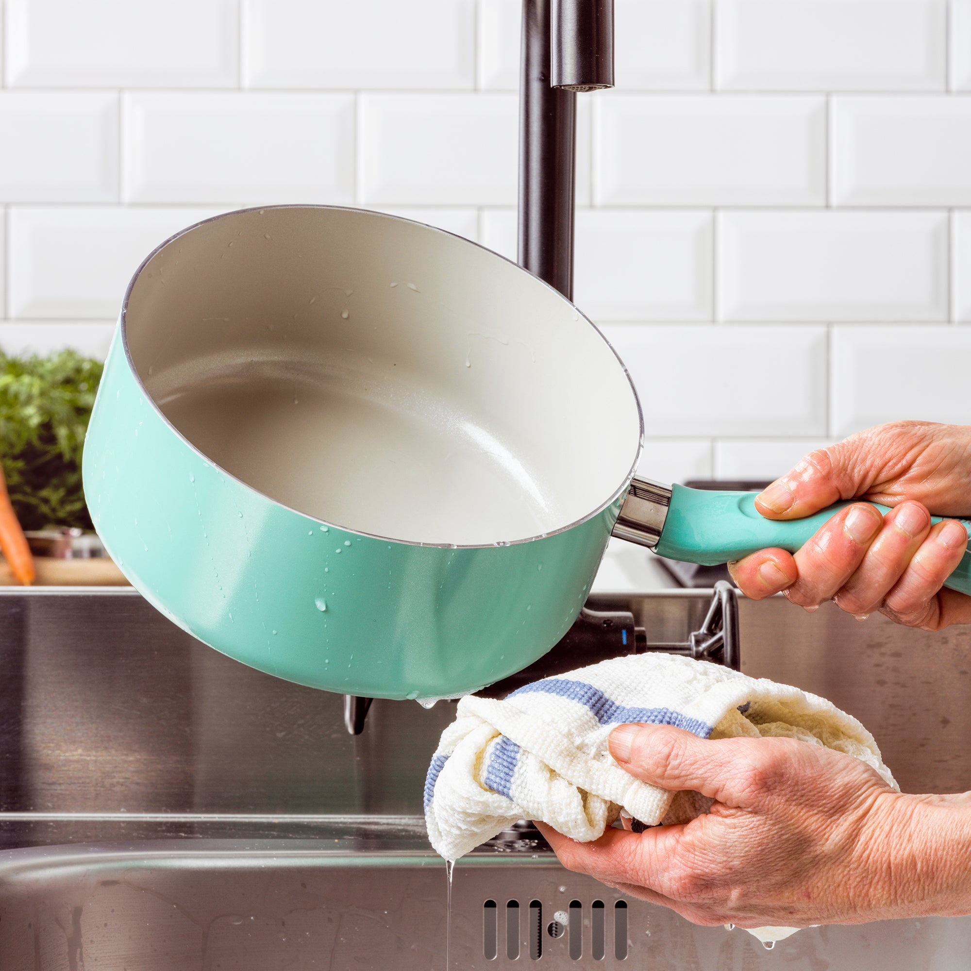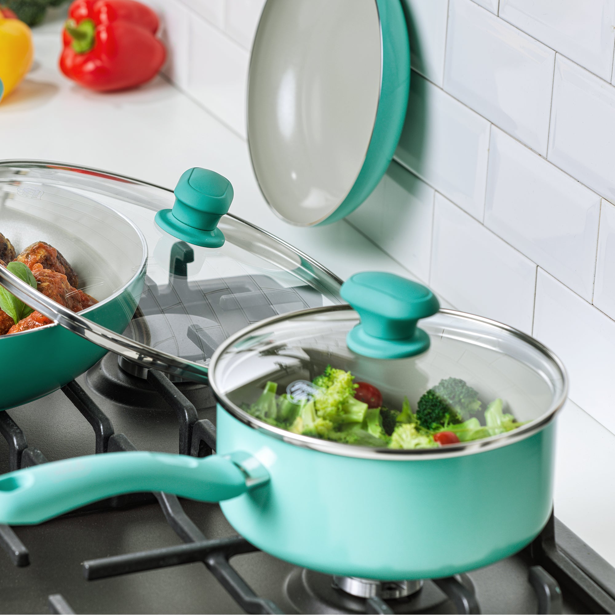 Like a refreshing ocean breeze with a handle and a lid, our Sandstone sauce pan brings a laid-back, revitalizing vibe to any kitchen. Designed for effortless performance and cleanup, this pan features our diamond-infused Sandstone nonstick coating, so you never have to worry about a sticky mess. Stay-cool handles make sure you have a good, comfy grip while the cook-and-look glass lid gives you a good look at all the action.