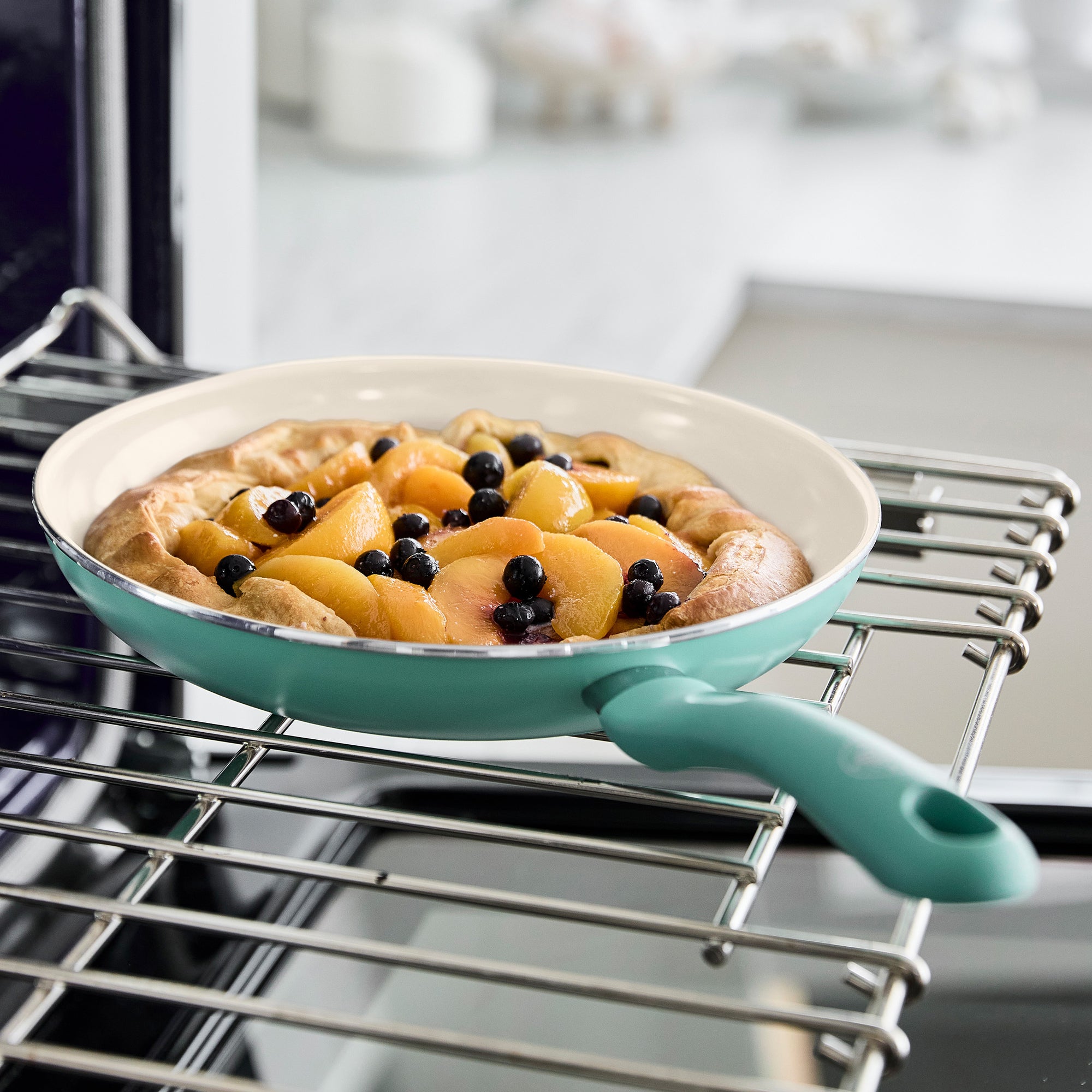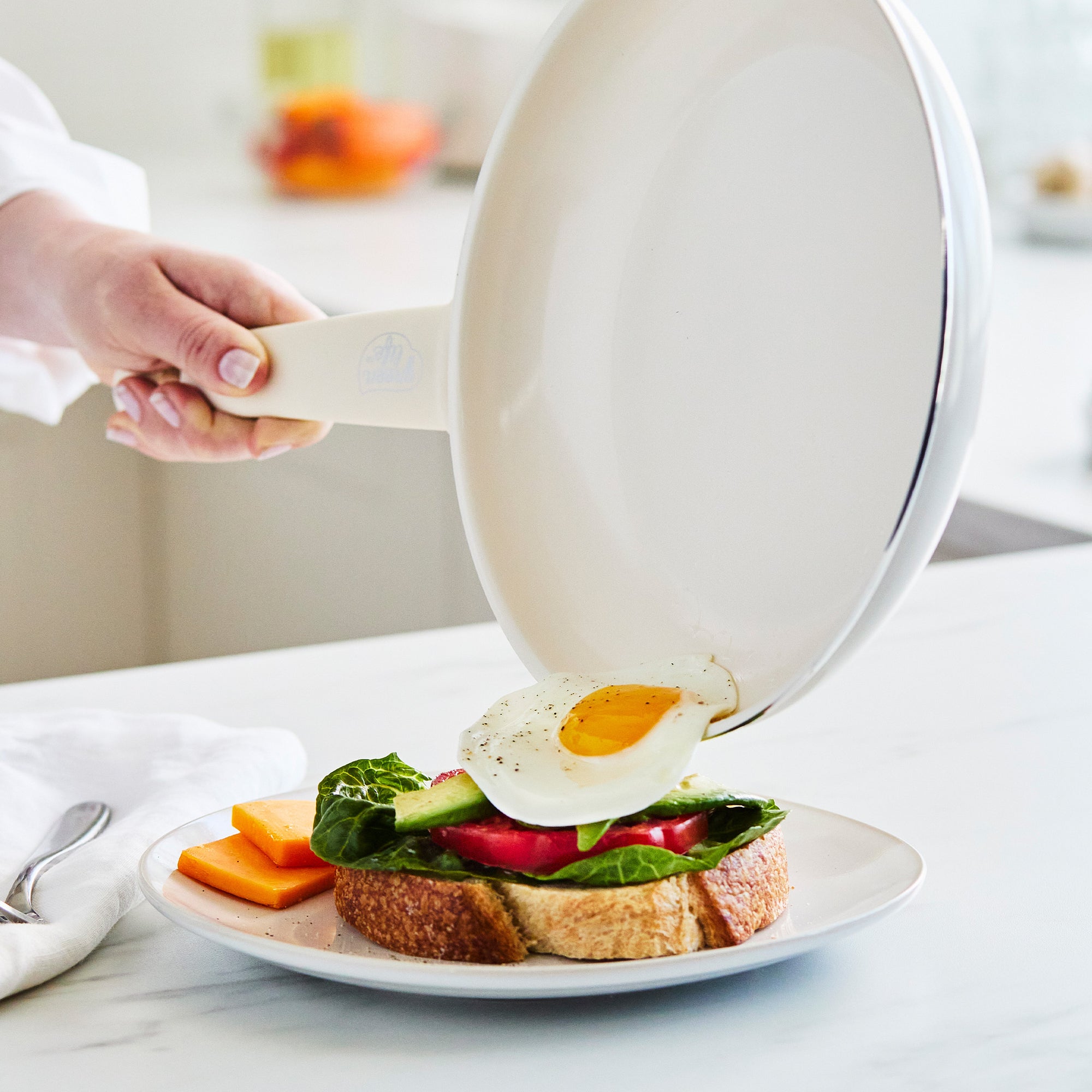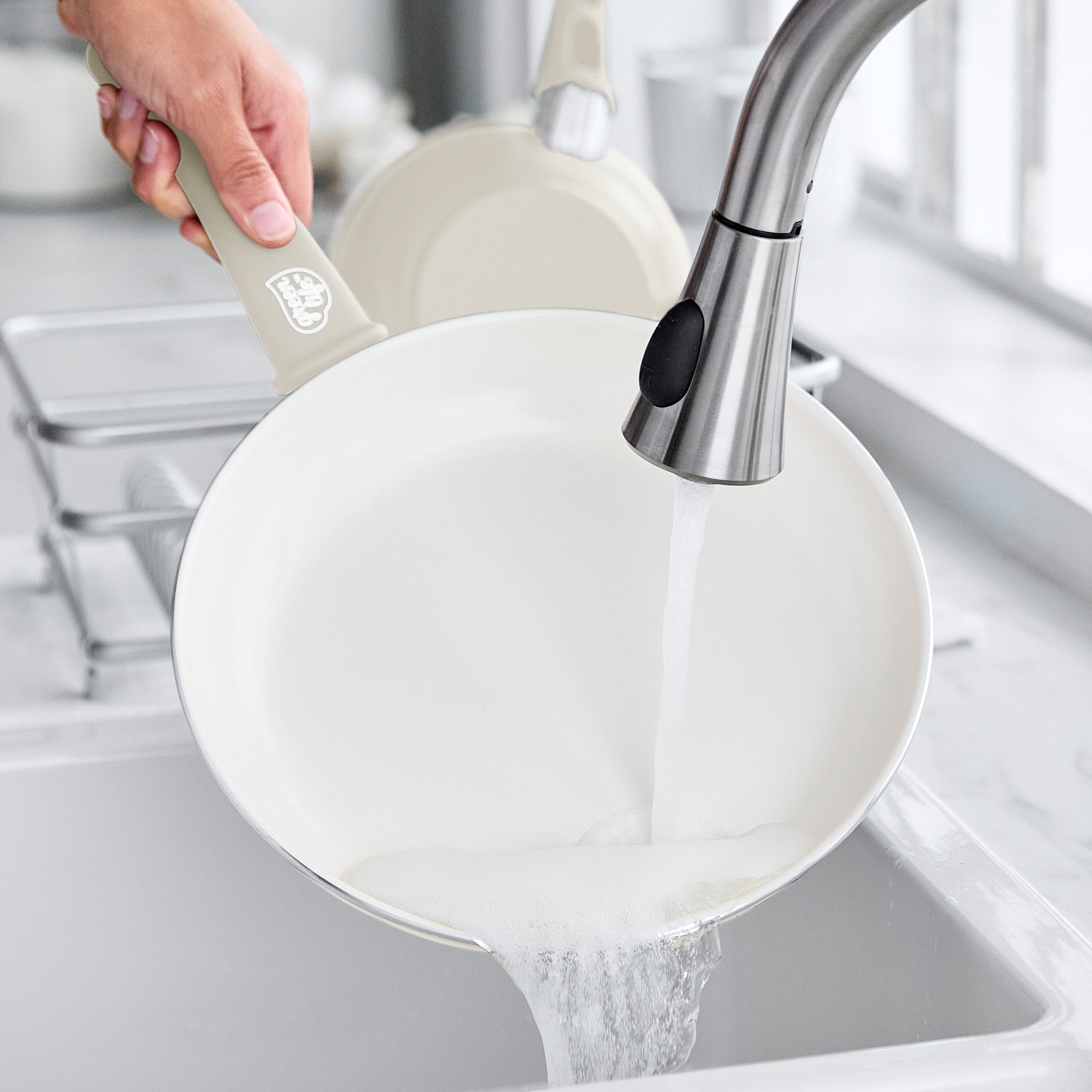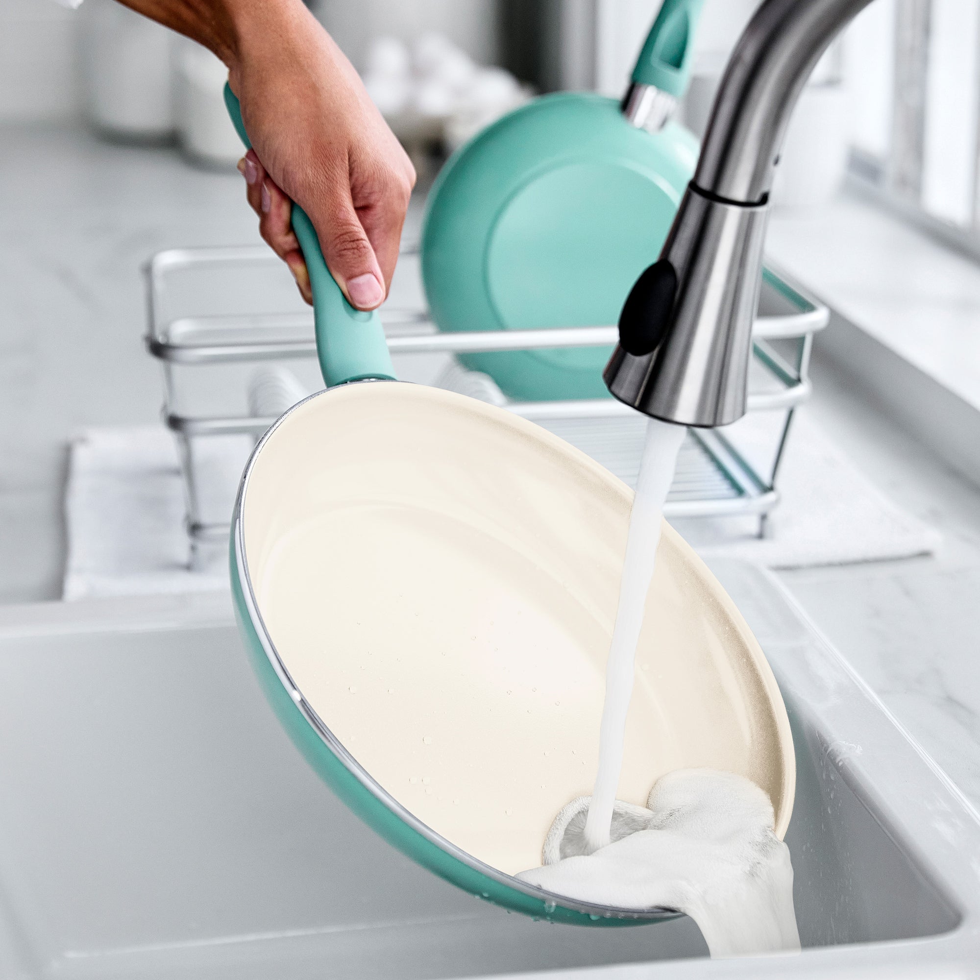 • Our healthy ceramic nonstick coating is made from sand and free of PFAS, PFOA, lead, and cadmium