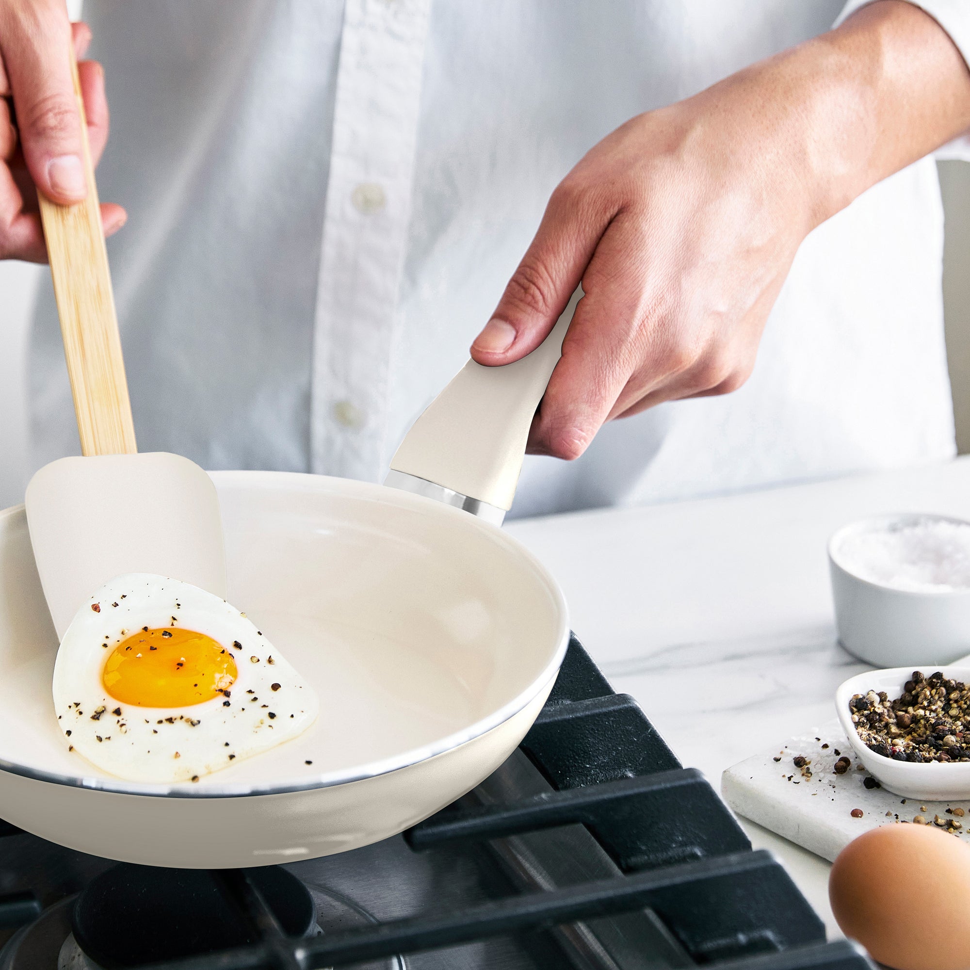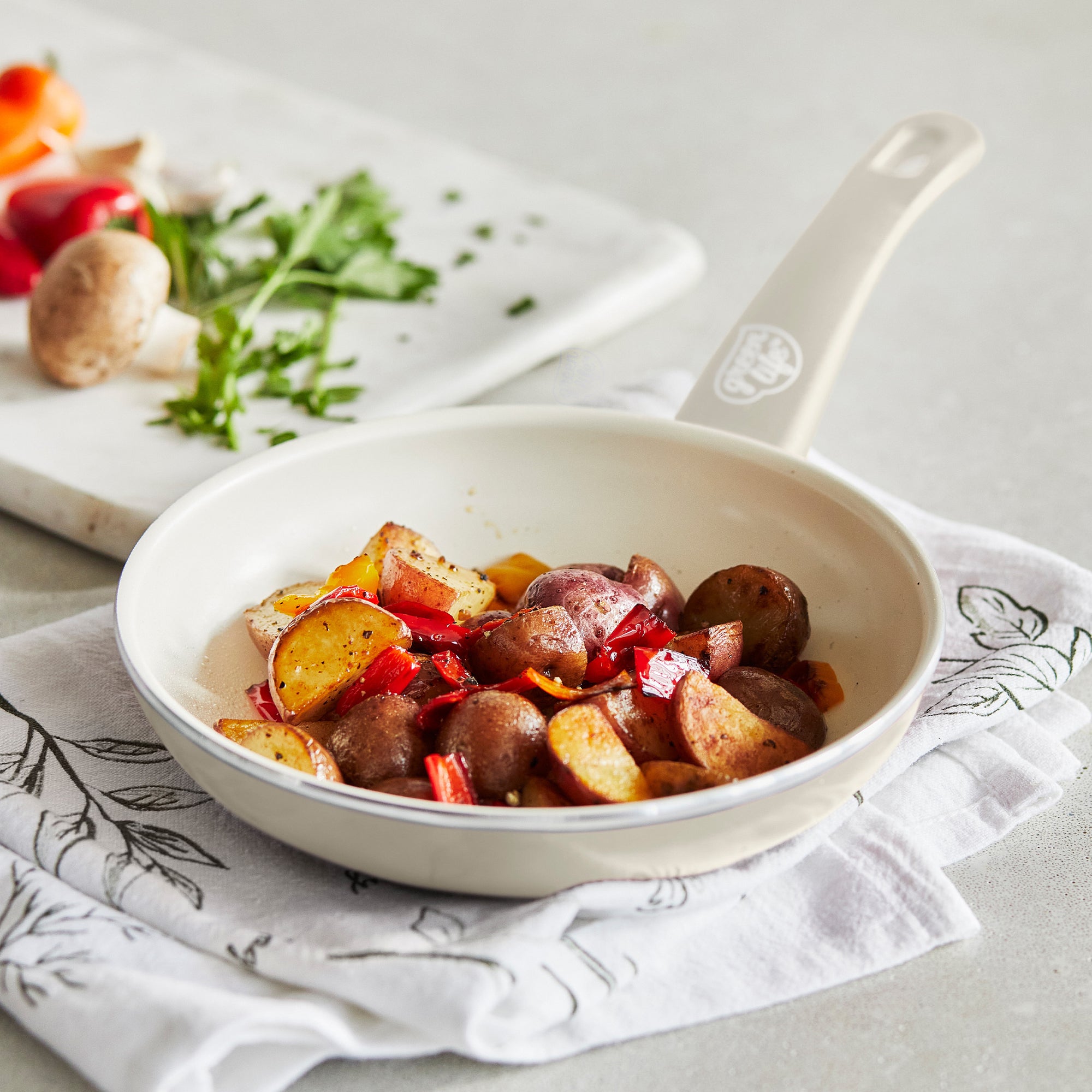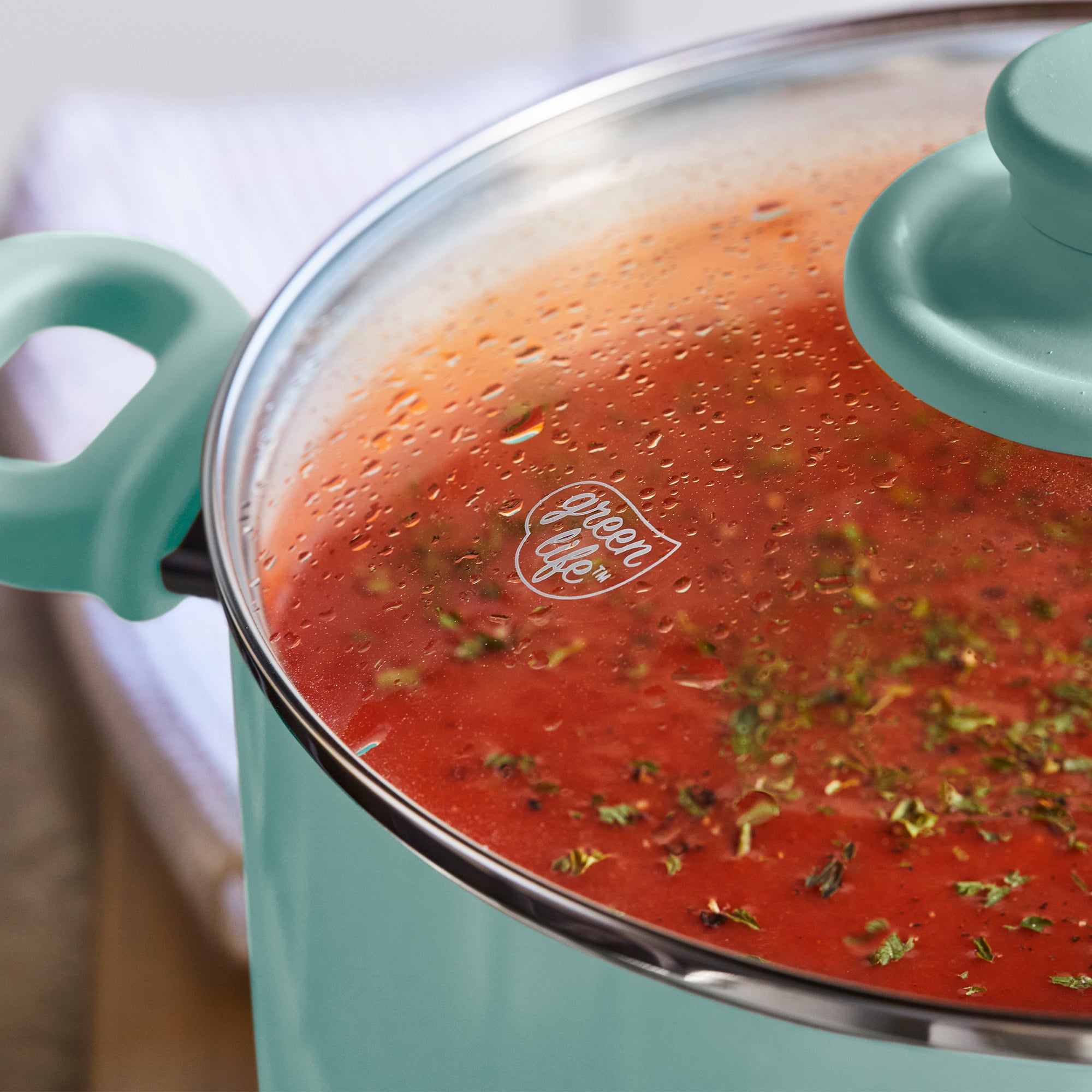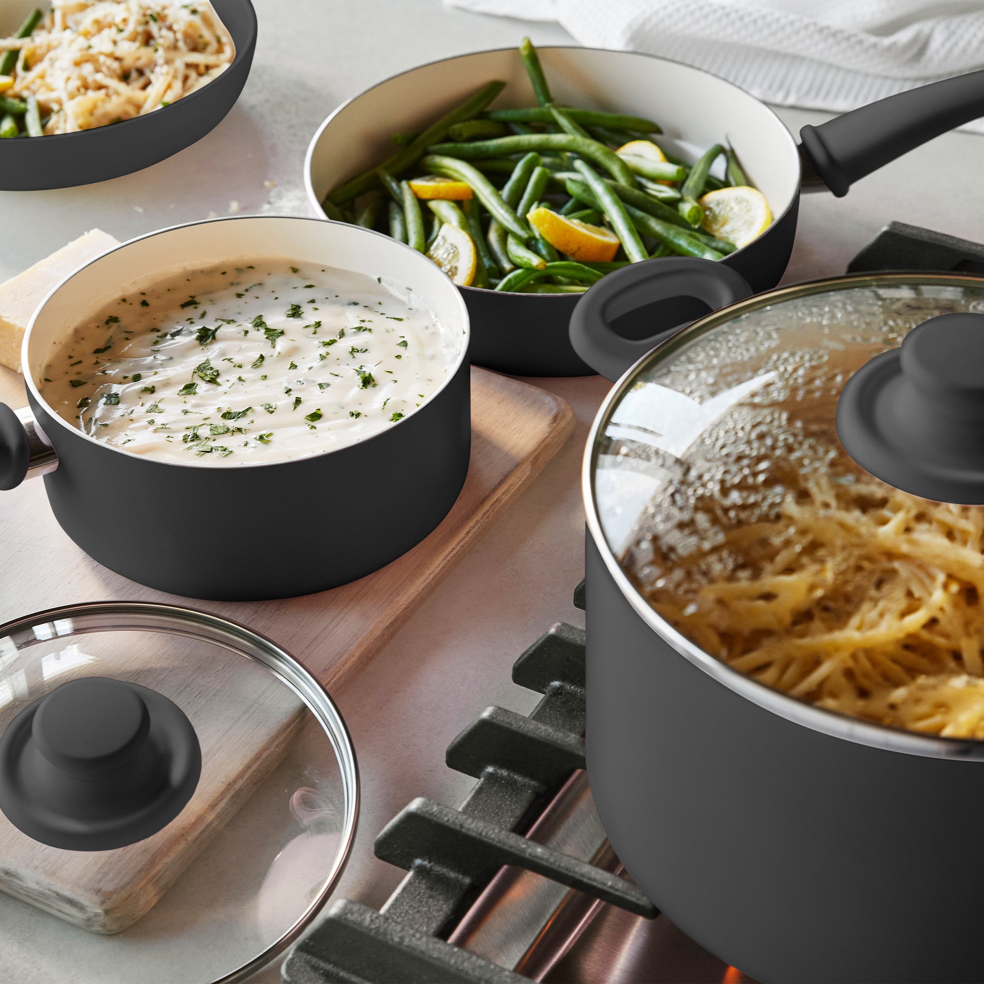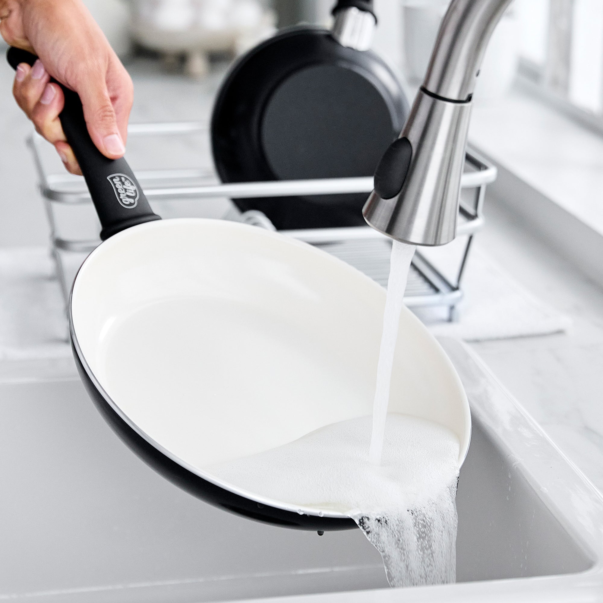 • Our healthy ceramic nonstick coating is made from sand and free of PFAS, PFOA, lead, and cadmium