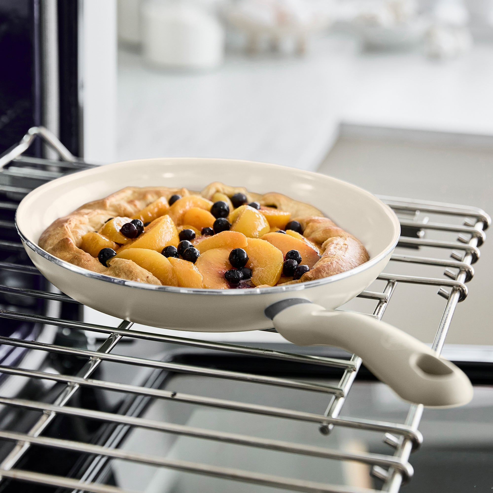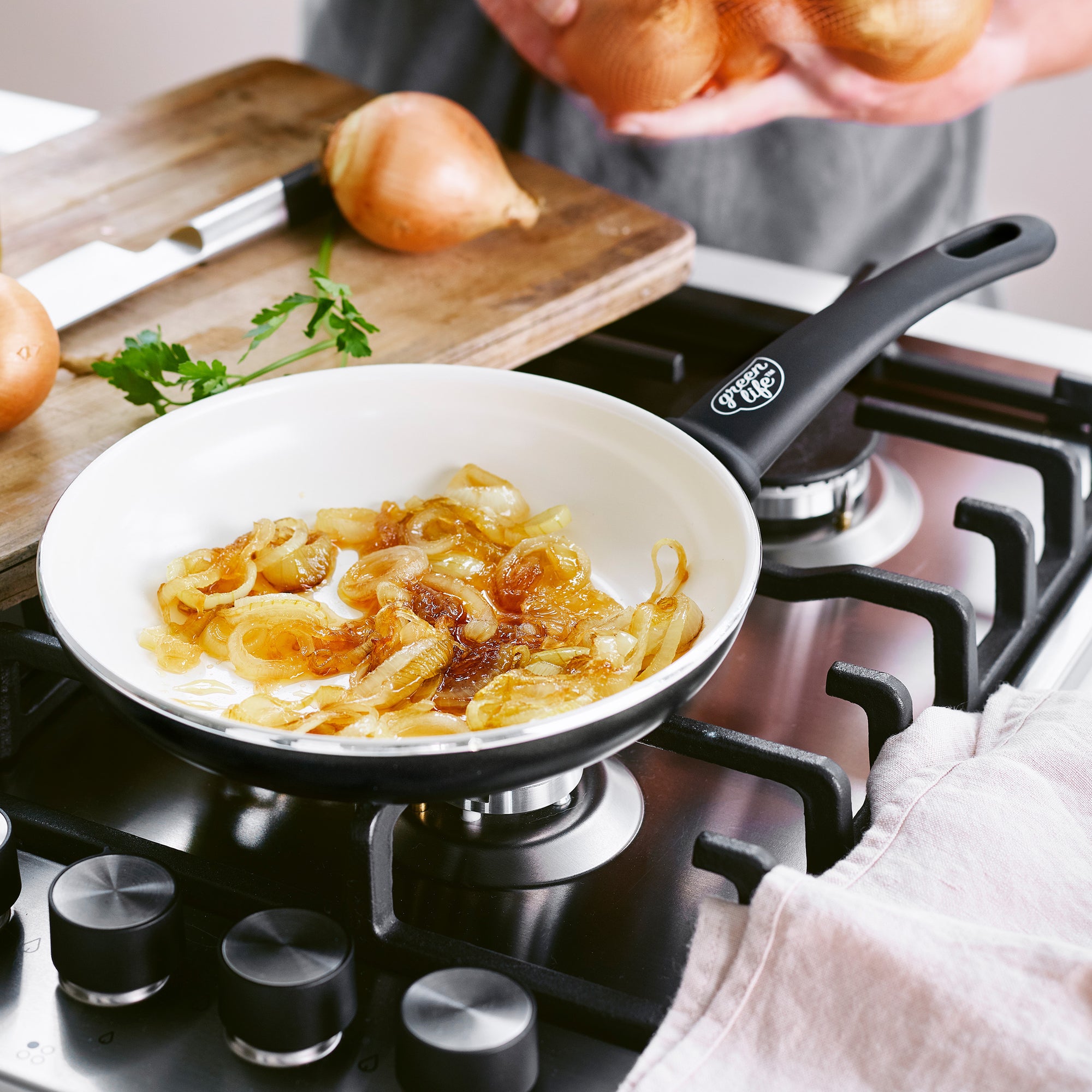 Get a grip—literally! Soft Grip features ergonomic, stay-cool handles that make everyday cooking easier than ever. Our healthy ceramic nonstick coating releases even the stickiest foods (hello, cheese) effortlessly and wipes clean in seconds, no soaking required.