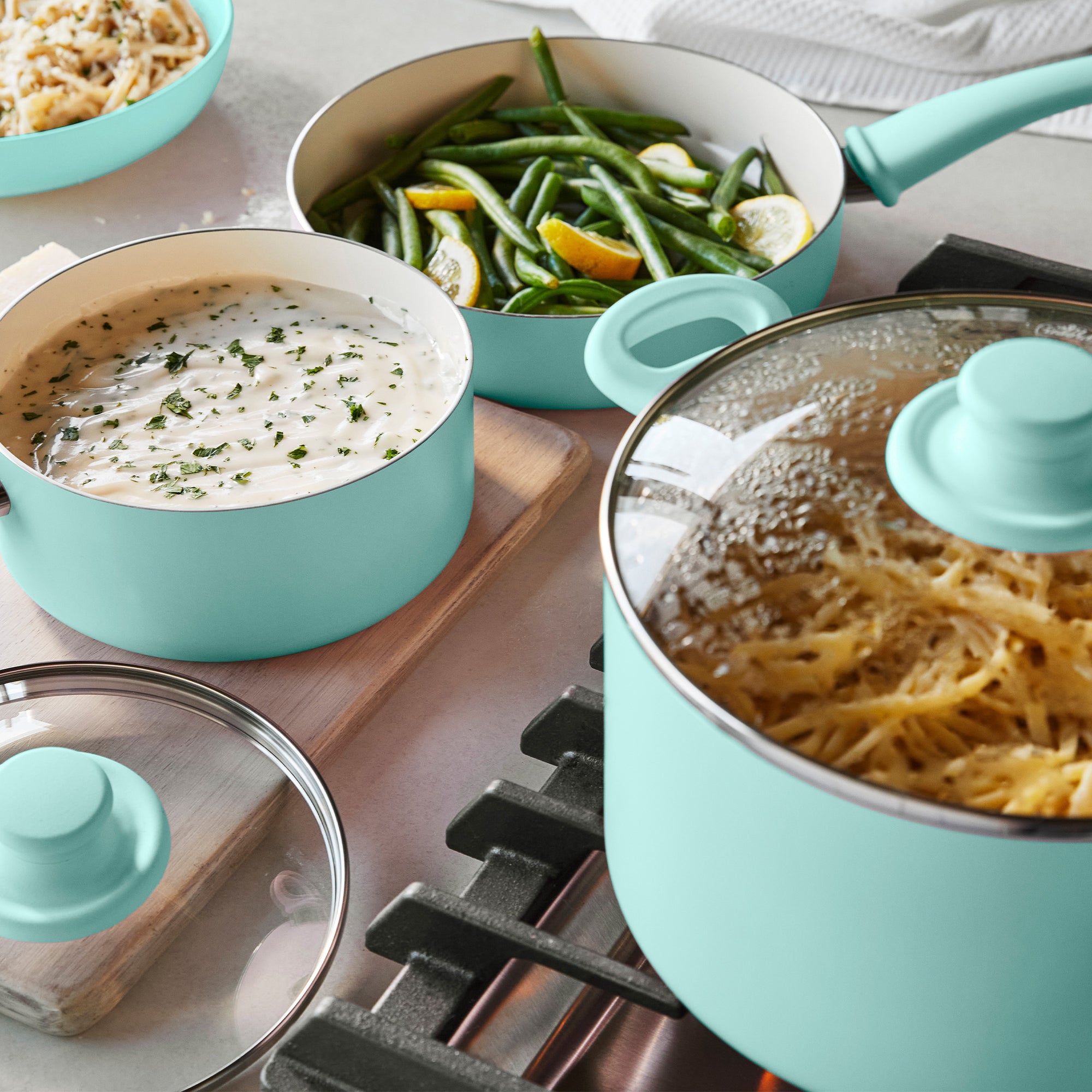 These sets include all the essentials you need to make nutritious meals and classic comfort foods—morning, noon, and night. Plus, the bright colors bring a ray of sunshine to any kitchen.