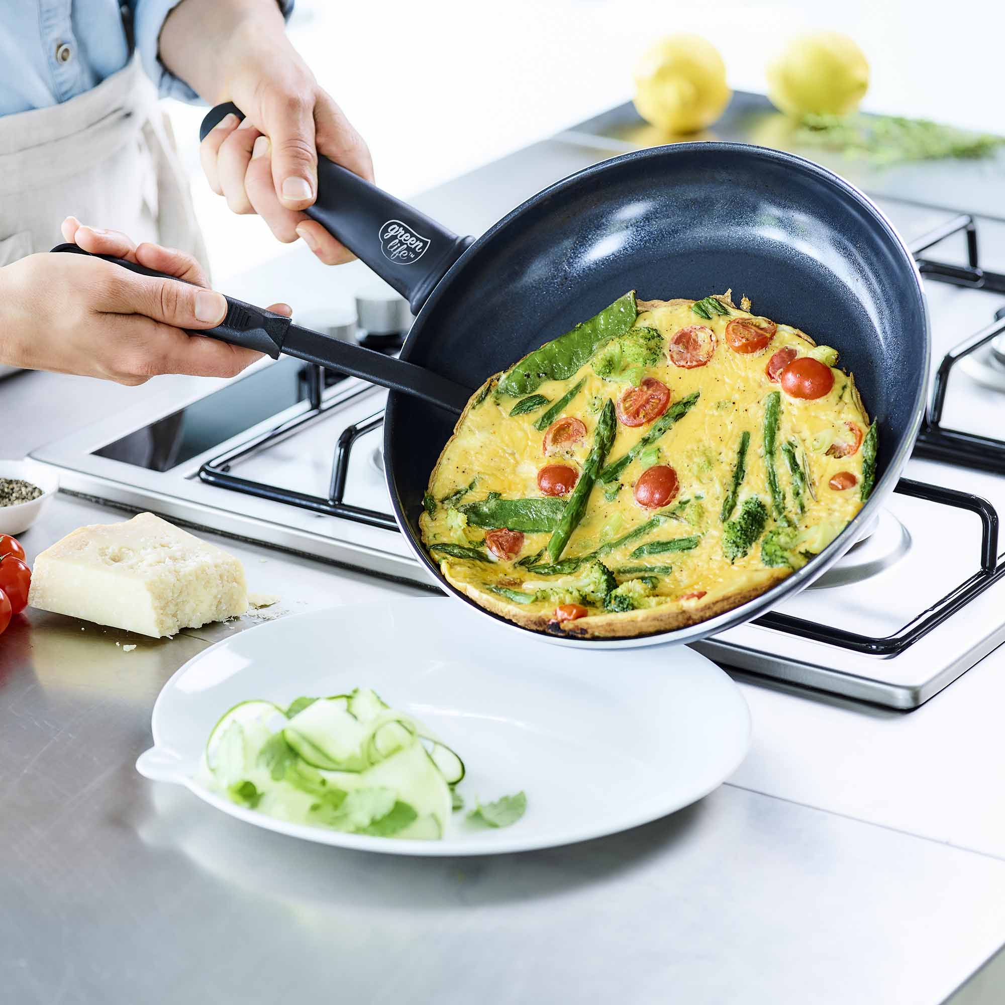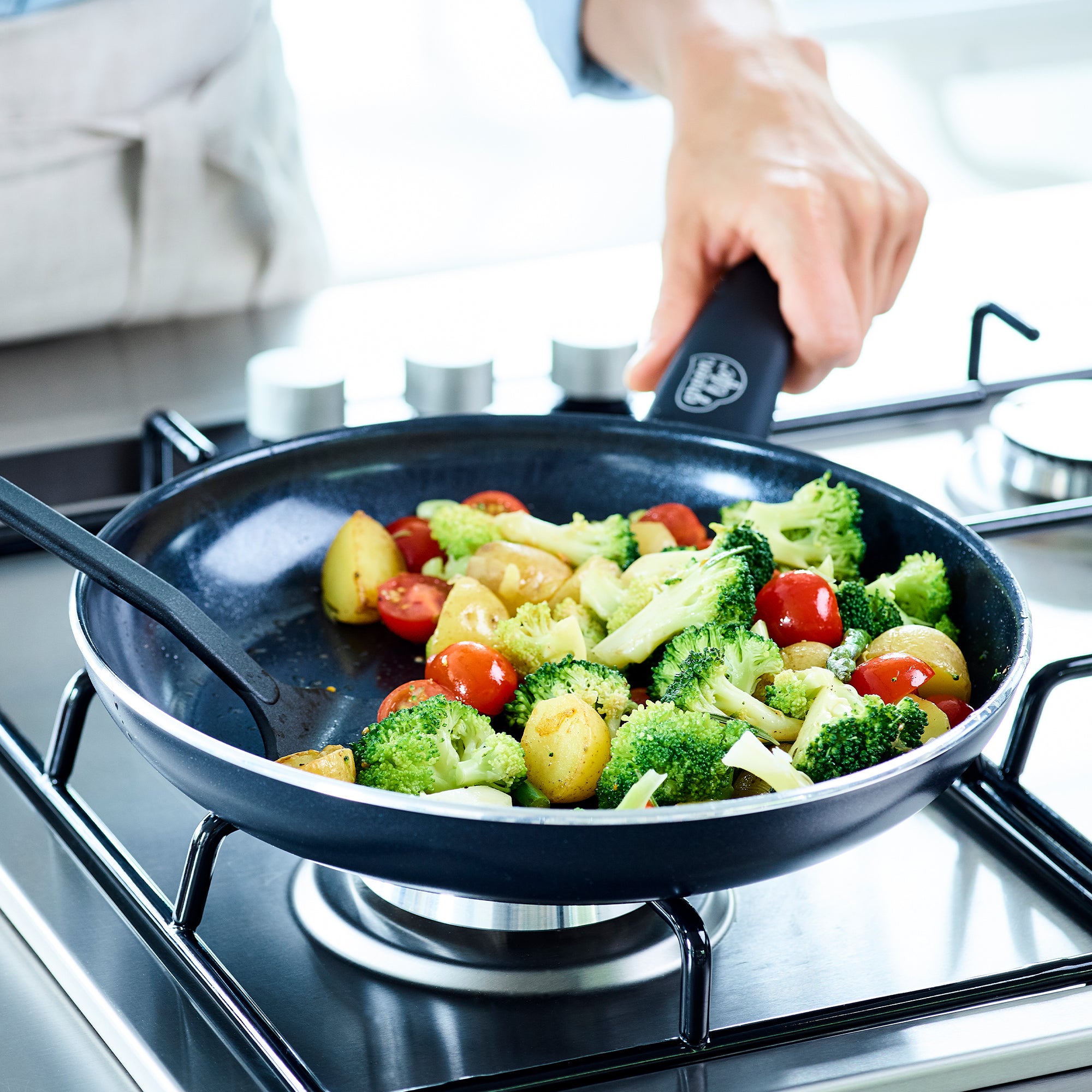 Diamonds are a cook’s best friend—our sleek pans sparkle thanks to a healthy ceramic nonstick coating that’s reinforced with diamonds. Even the stickiest foods (hello cheese) release effortlessly so the pan wipes clean in seconds, no soaking required. And our Soft Grip, stay-cool bakelite handle offers extra comfort that makes everyday cooking easier than ever.