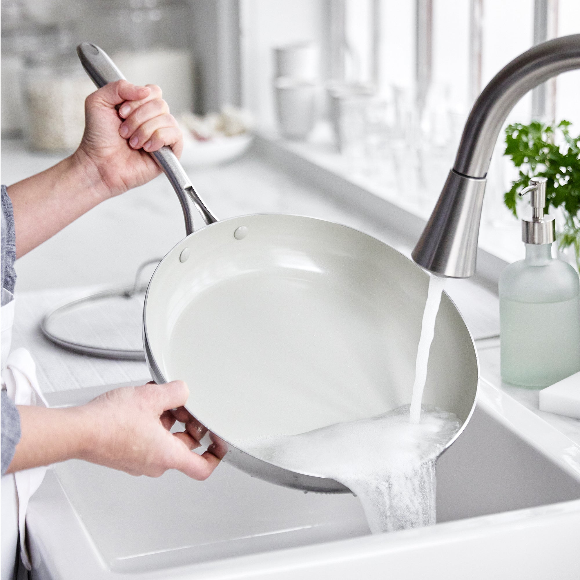 And it’s finished with our toxin-free ceramic nonstick coating, so everything you make will be a little healthier, too. That’s because our ceramic nonstick is not stuck in the past—our ceramic nonstick starts with sand and creates 60% fewer CO2 emissions during the curing phase than traditional coatings.